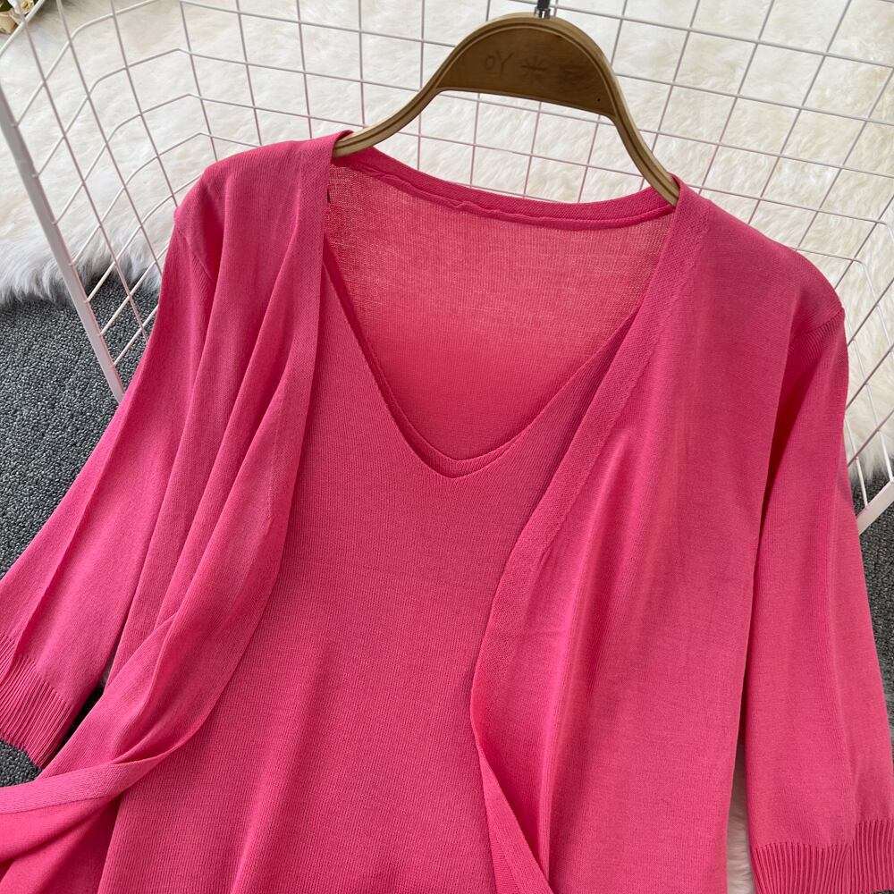 春ニットスリーピーススーツ女性長袖ショールカーディガン + V ネックセータータンクトップ + ワイドレッグパンツセット衣装 ロング スプリング 春物 ワイドパンツ Abe56151976326