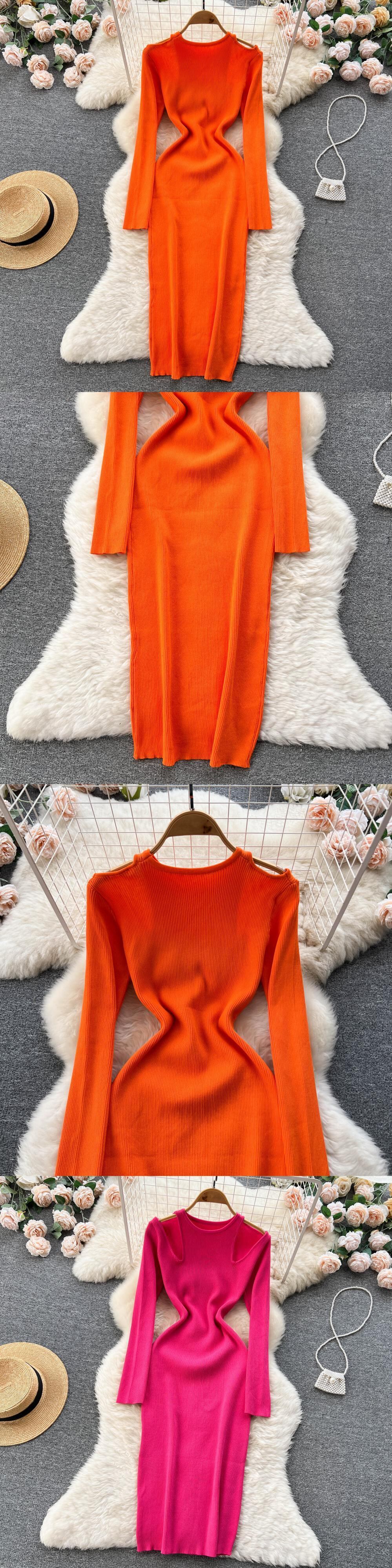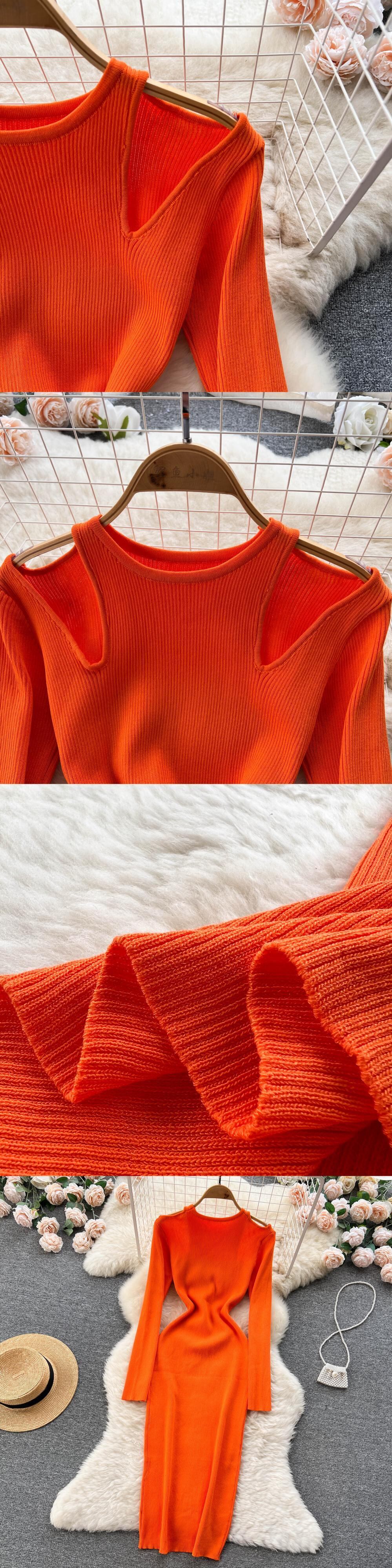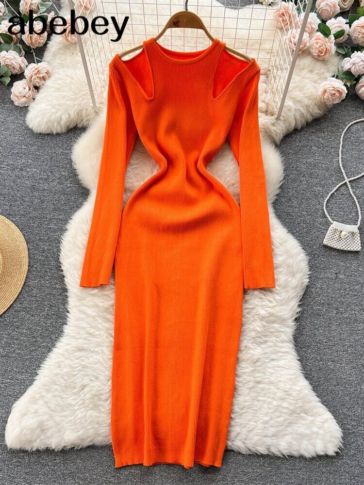 セクシーな中空アウトセータードレス女性長袖スリム暖かいドレス 2022 パーティー弾性ニットロングドレス エラスティック 伸縮 Abe11761579889