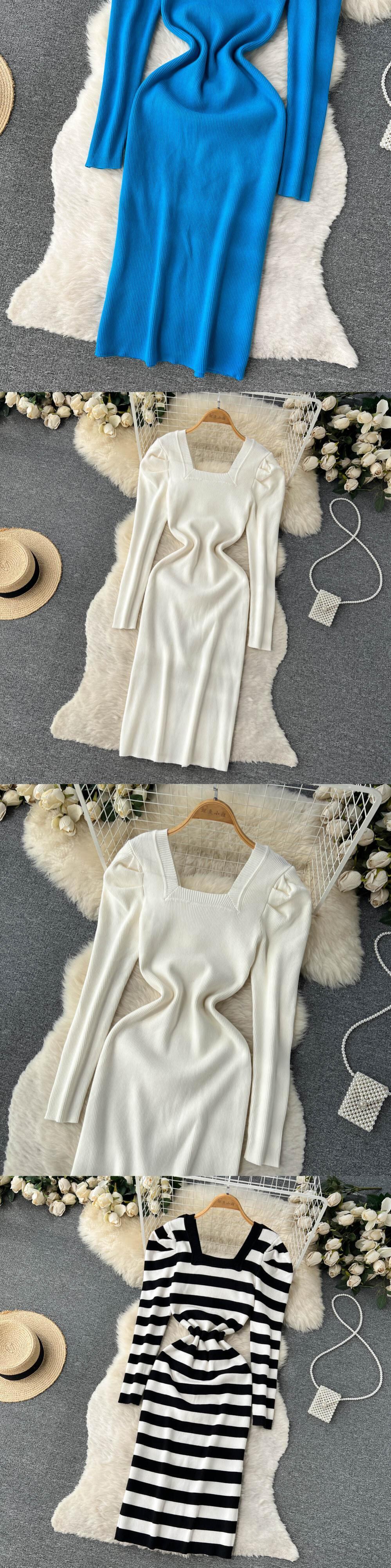 テンペラマント スクエアカラー ニットワンピース 秋 長袖 ボディコンセーター フレンチOL セクシー 無地 あったかワンピース ロング オータム 秋物 ソリッドカラー スクウェア Abe82519289279
