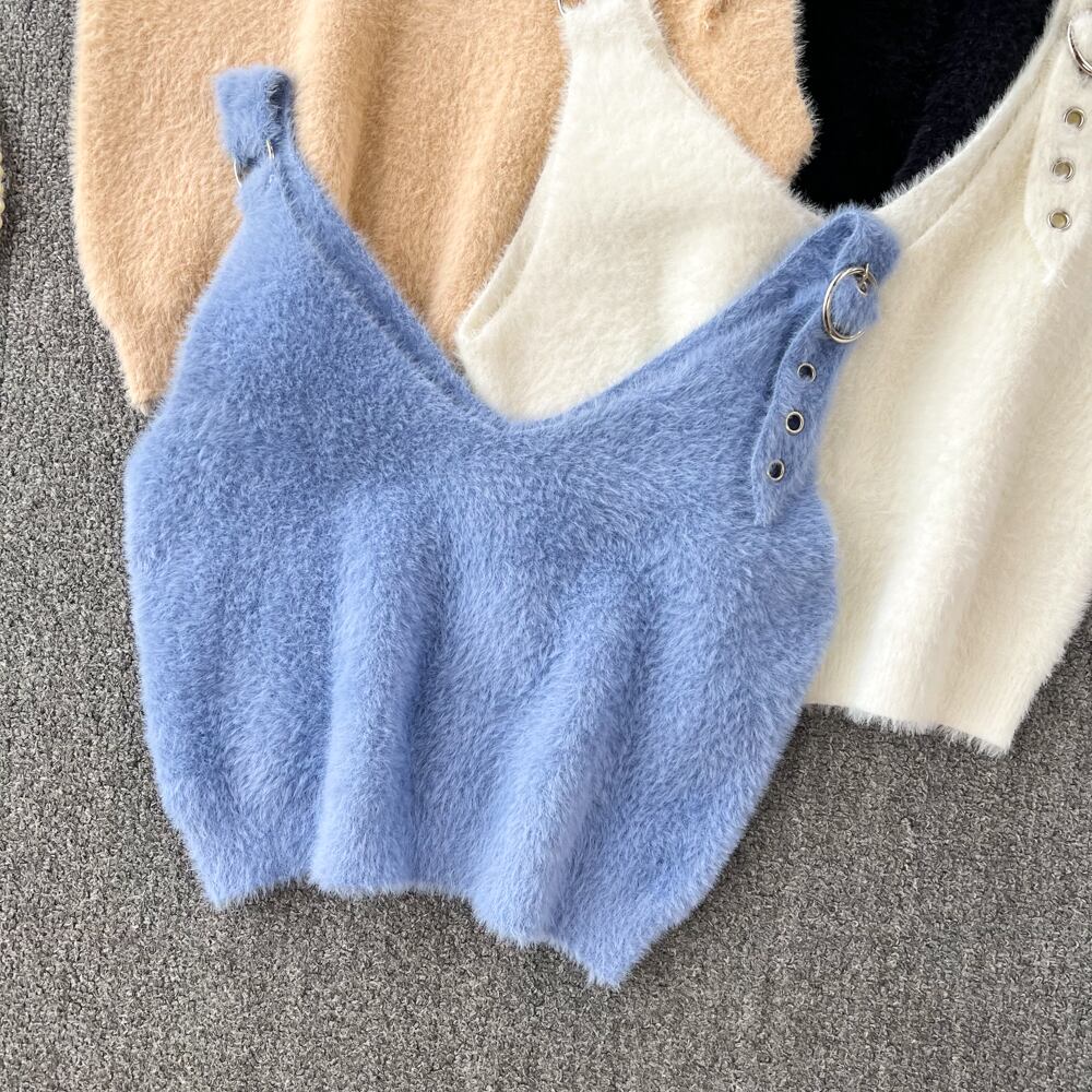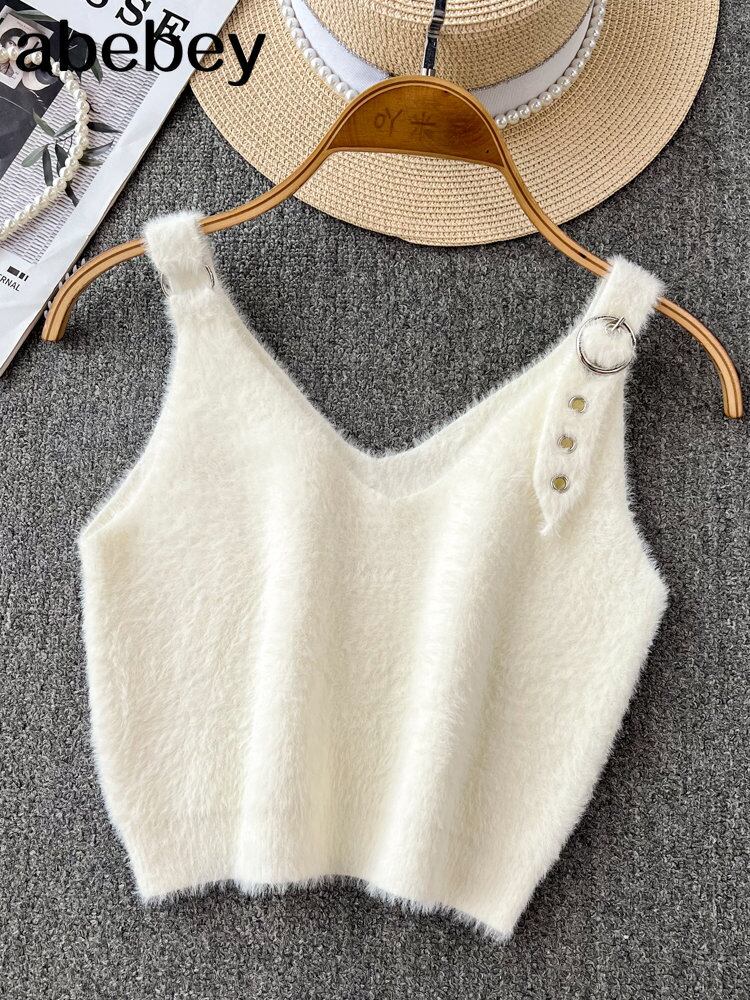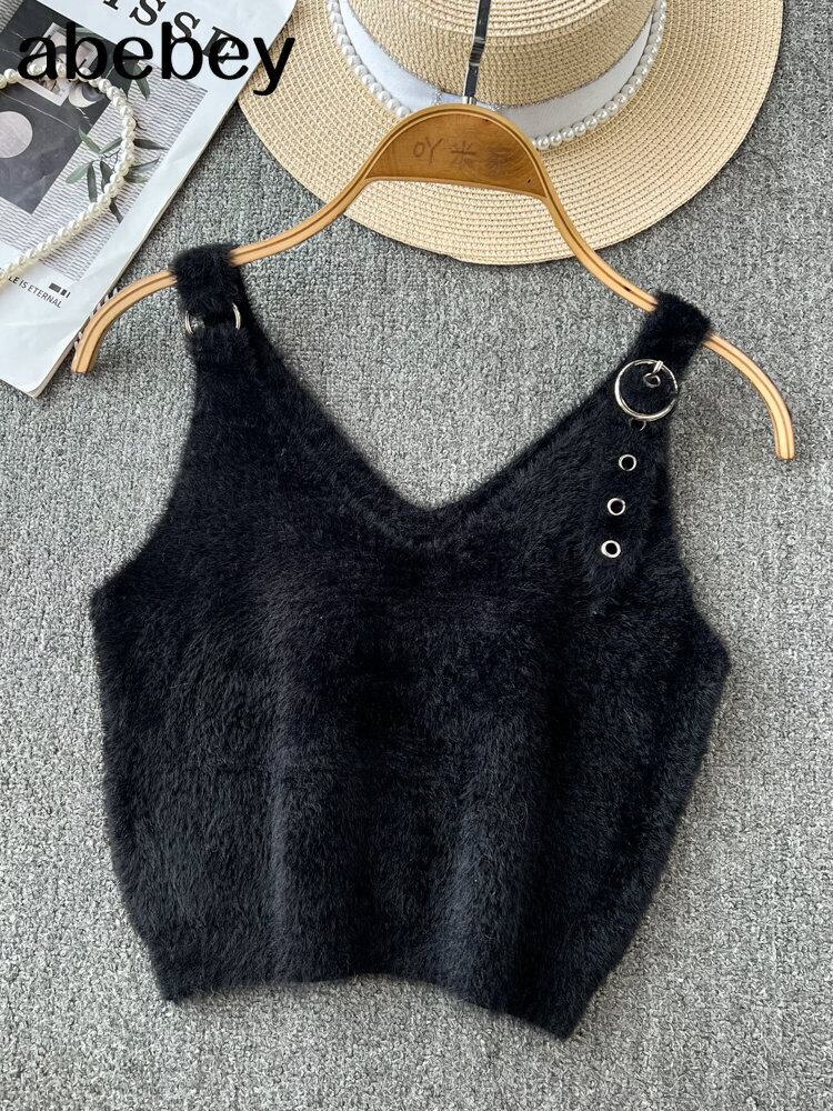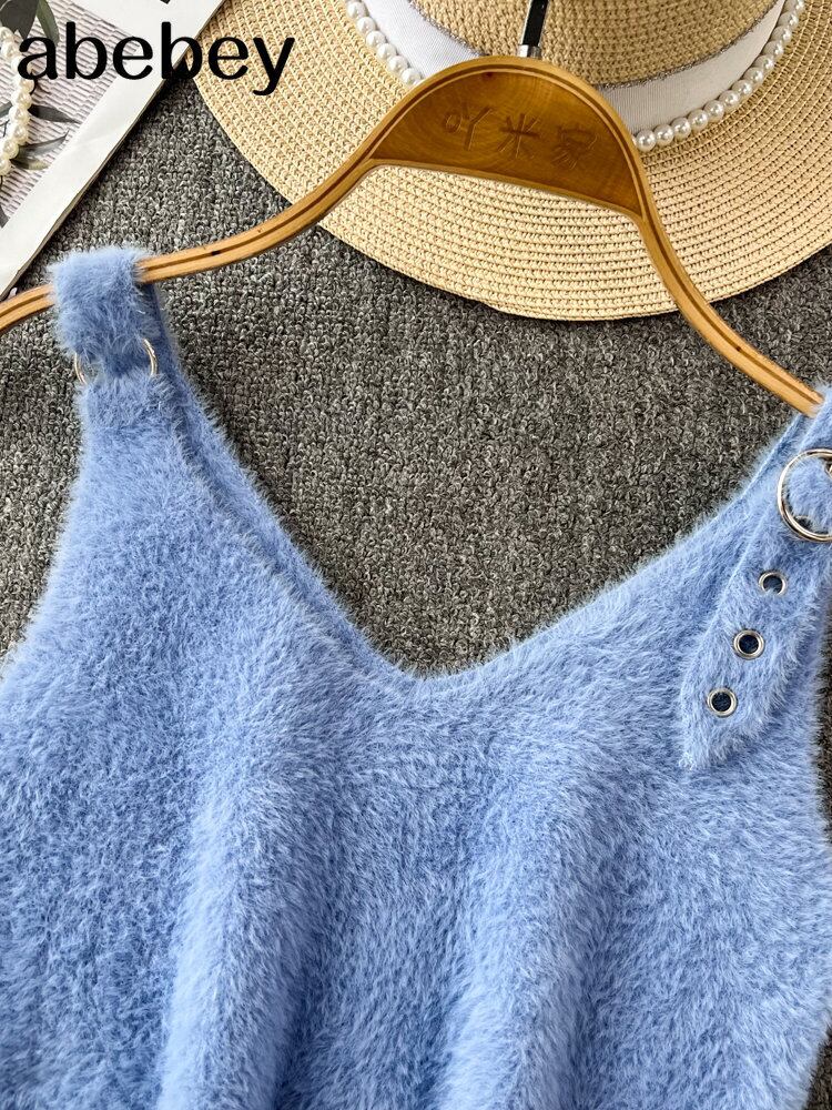 春comtableニットベストトップ女性ダブルvネックショー薄いお悔やみベルト無地スタイルトップス スプリング 春物 ハーネス ソリッドカラー Abe45108705344