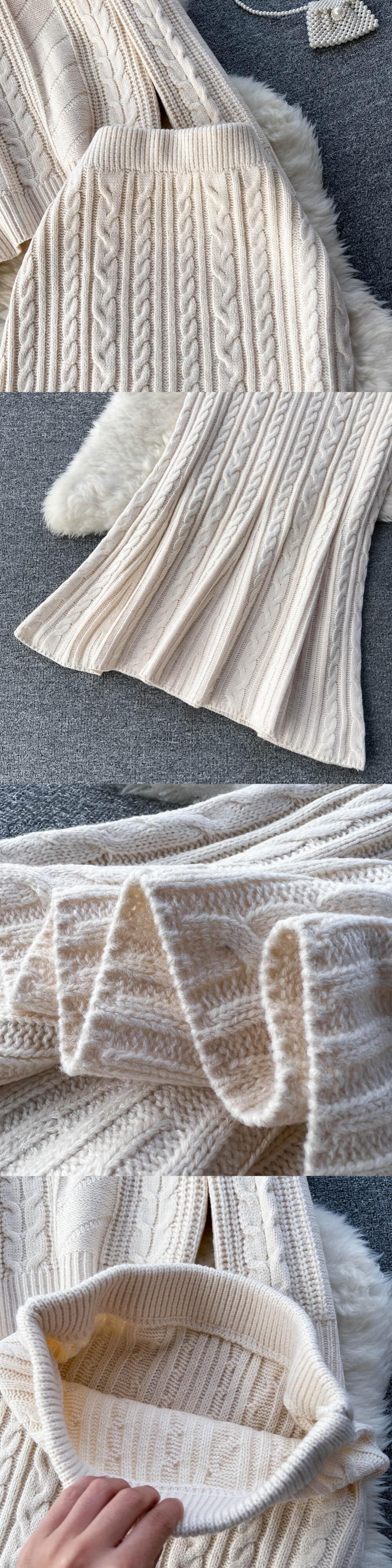 冬の女性ニットセットフレンチシニア O ネックニットトップ + ロング Fashtail スカート厚いセーター二枚スーツ ウィンター 冬物 Oネック Abe11643583324