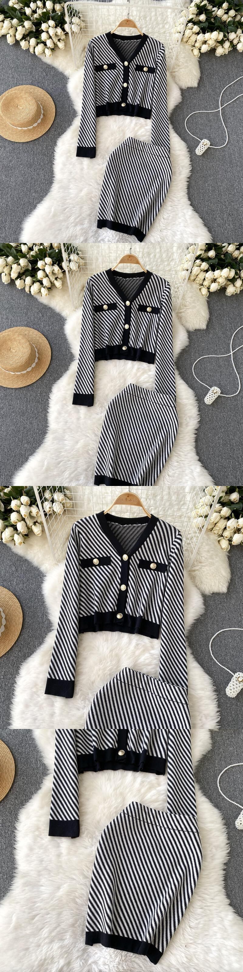ツーピースセット女性スカート長袖カーディガントップス + ペンシルスカート 2 点セット女性女性セーター + ニットスカートセット冬のスーツ ロング ウィンター 冬物 Abe46427932052