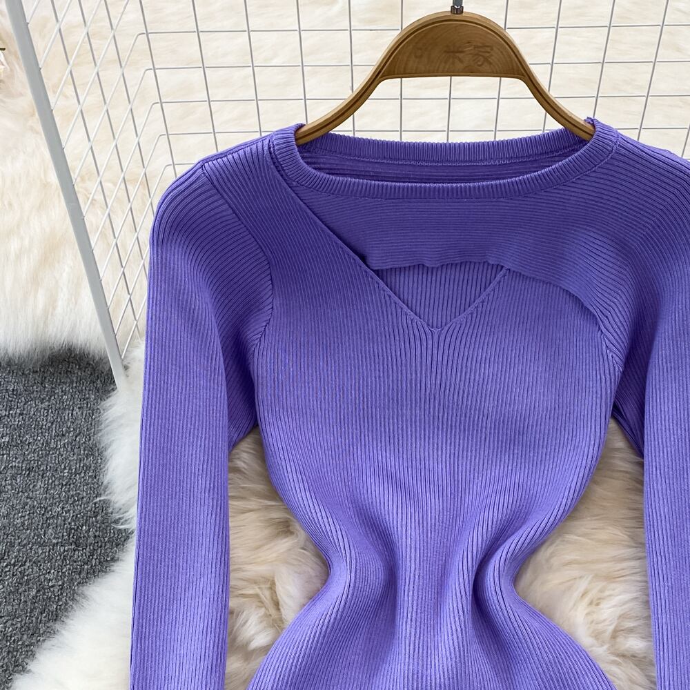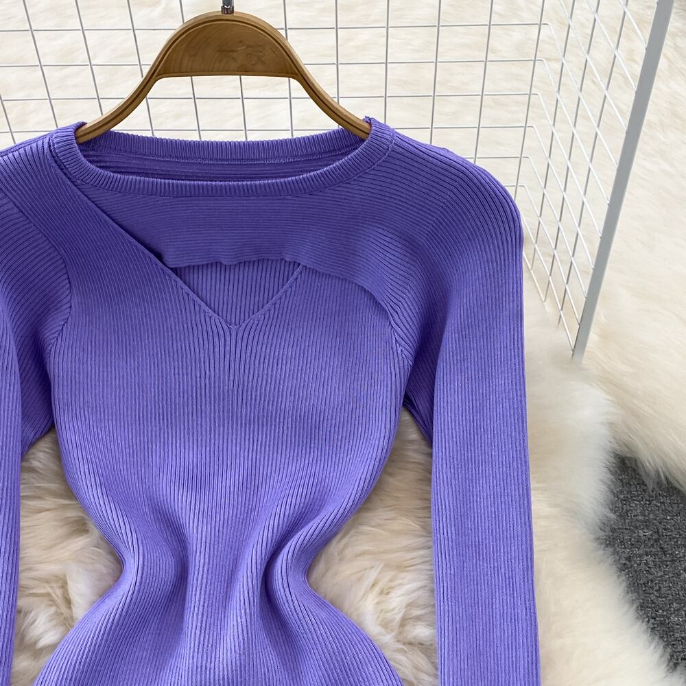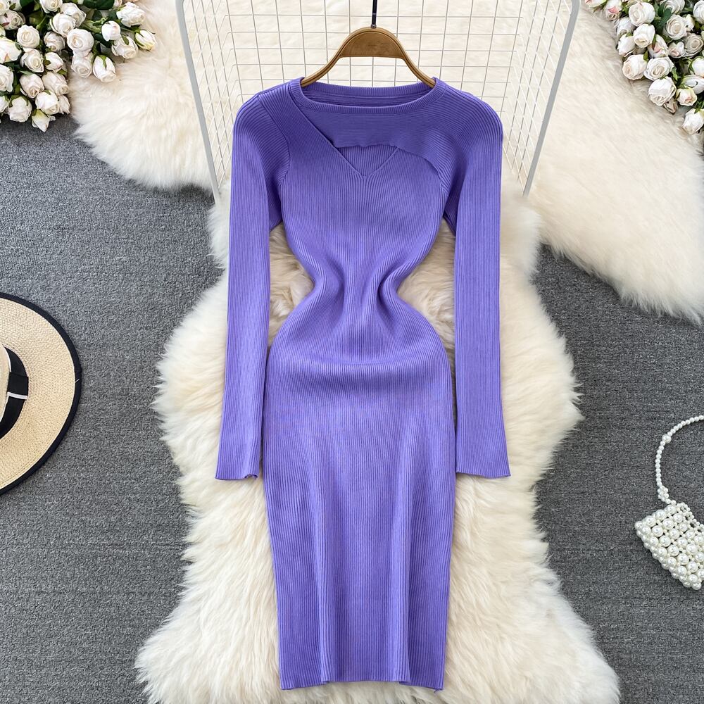 中空アウト女性ニットペンシルドレス長袖 O ネック弾性スリムドレス秋冬セクシーなボディコン暖かいセータードレス ロング エラスティック 伸縮 オータム 秋物 ウィンター 冬物 Oネック Abe59734493006