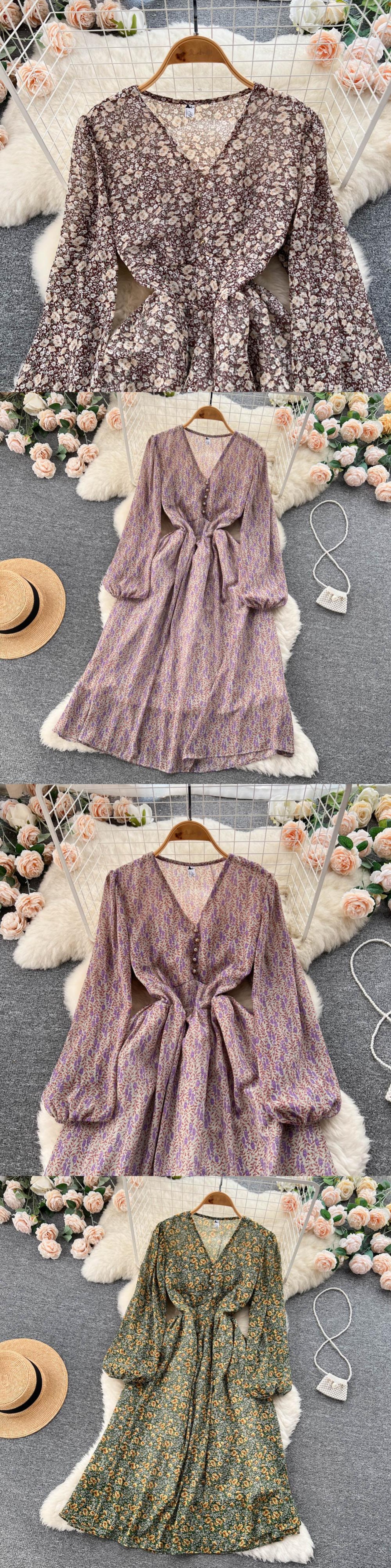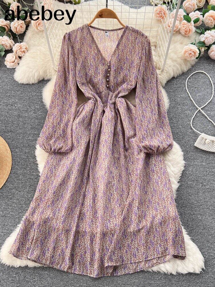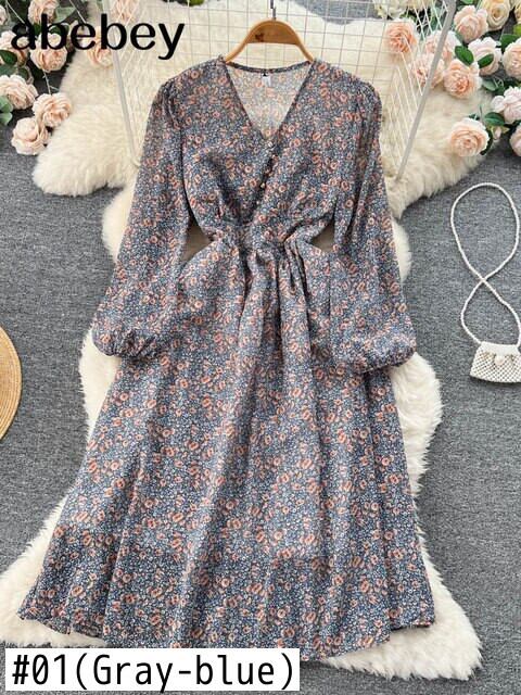 ドレス女性 2022 春秋の V ネック帝国フルミディドレス気質シックな Vestidos スプリング 春物 オータム 秋物 Vネック Abe6184565610