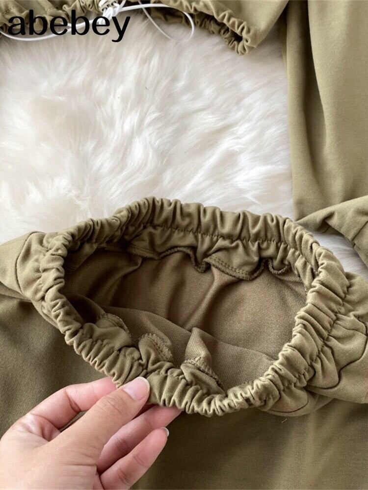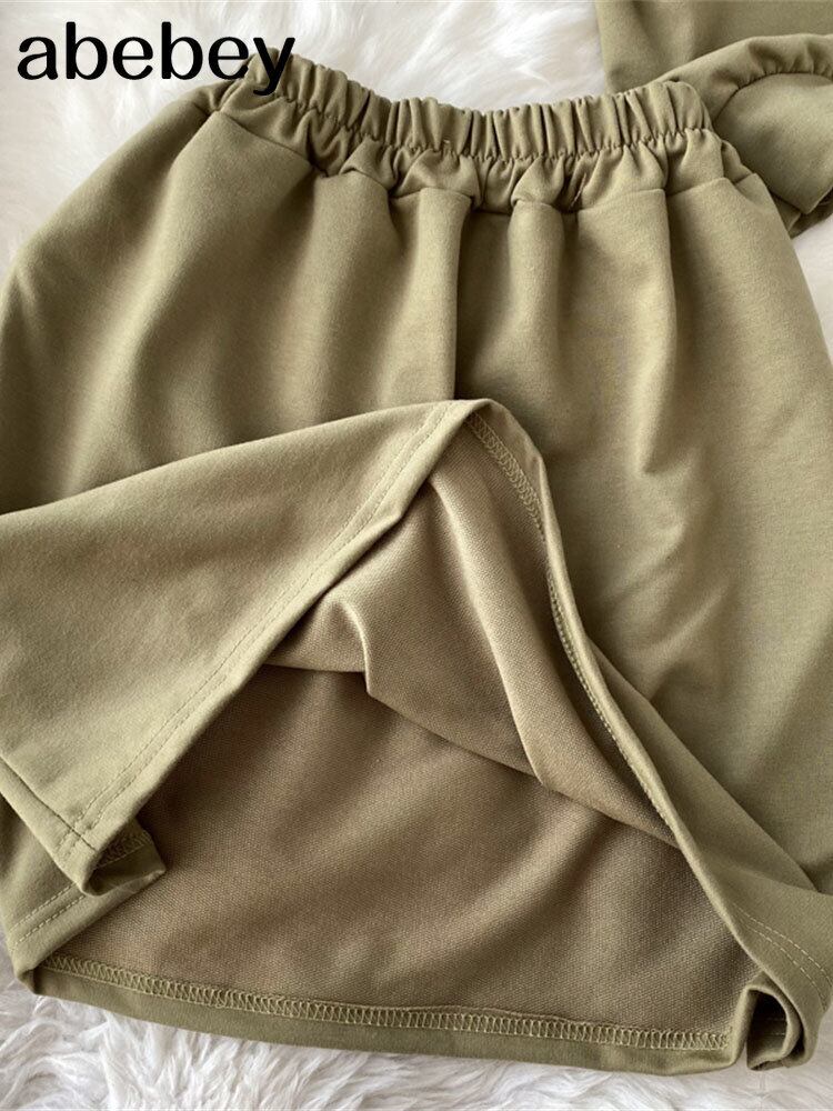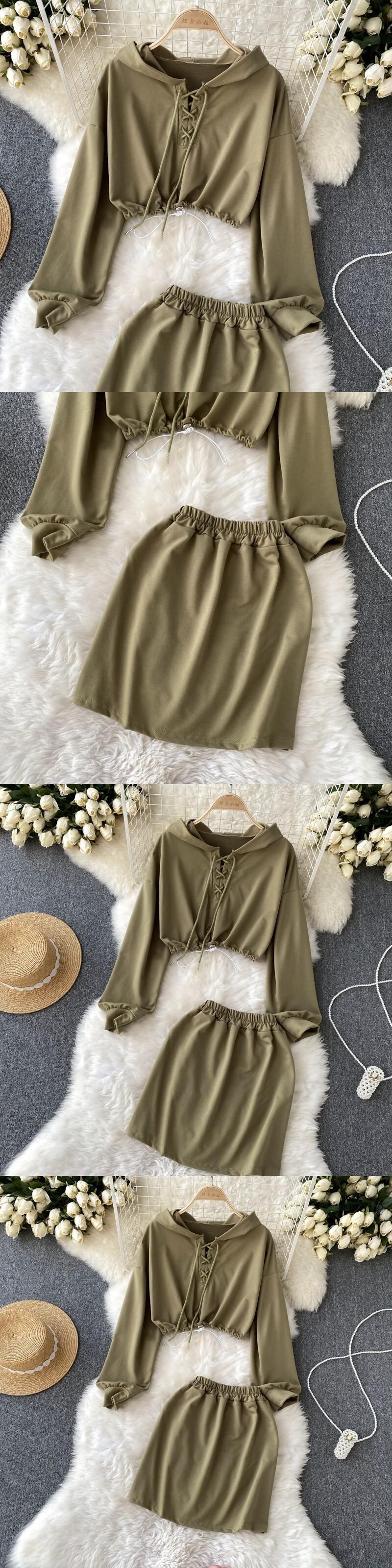 黒 2022 女性のスポーツウェア長袖無地パーカースウェットシャツ春秋プルオーバースウェットシャツスカート 2 点セット ロング ブラック スプリング 春物 オータム 秋物 ソリッドカラー Abe48890713443
