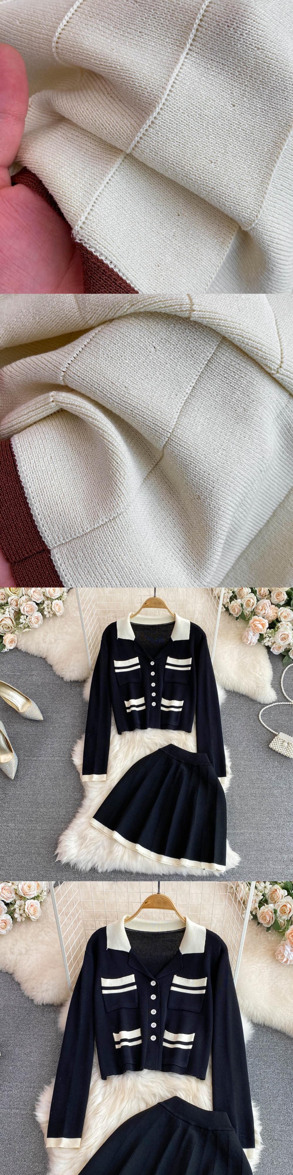 セーター 2 点セット女性 v ネック長袖ショートトップスカーディガン弾性ウエストミニスカートレトロ Y2K 冬暖かいスーツ ロング エラスティック 伸縮 ウィンター 冬物 Vネック Abe21645310285