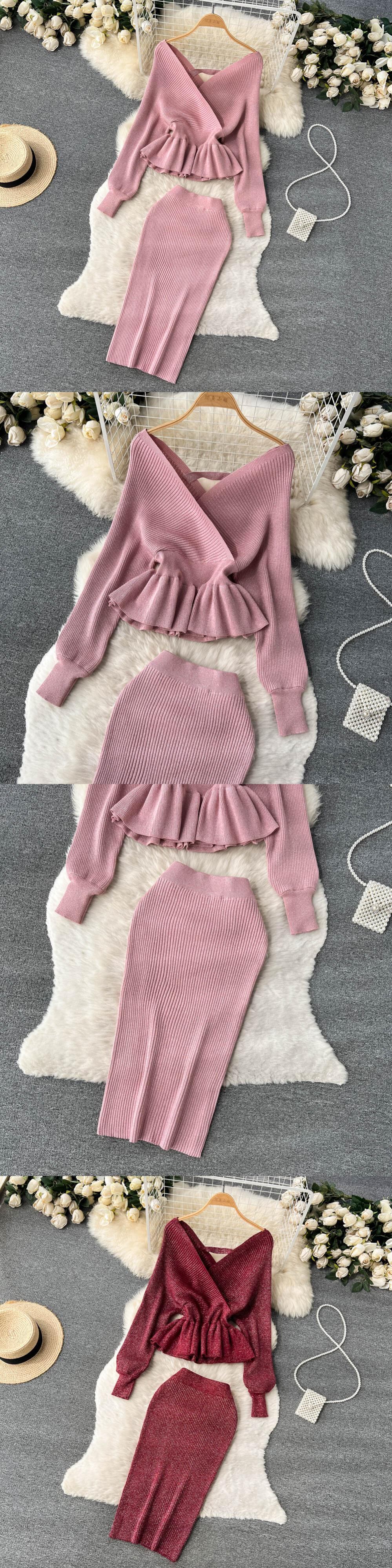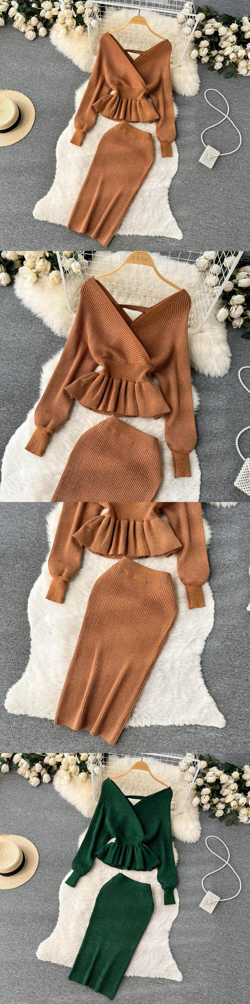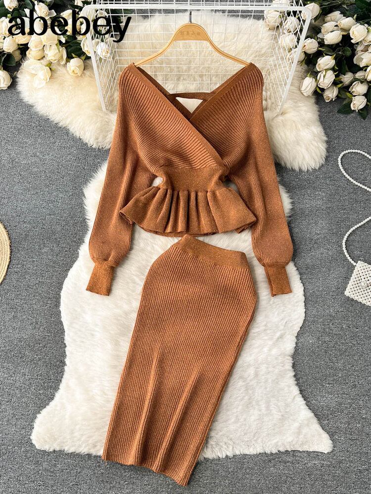 秋冬ツーピースセット女性冬長袖ジャンパーセータースカートセット暖かいニット衣装トップとスカートセット衣装 ロング オータム 秋物 ウィンター 冬物 Abe9866245325