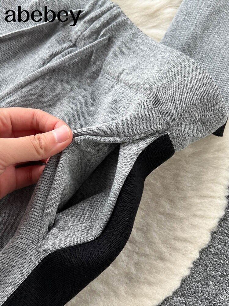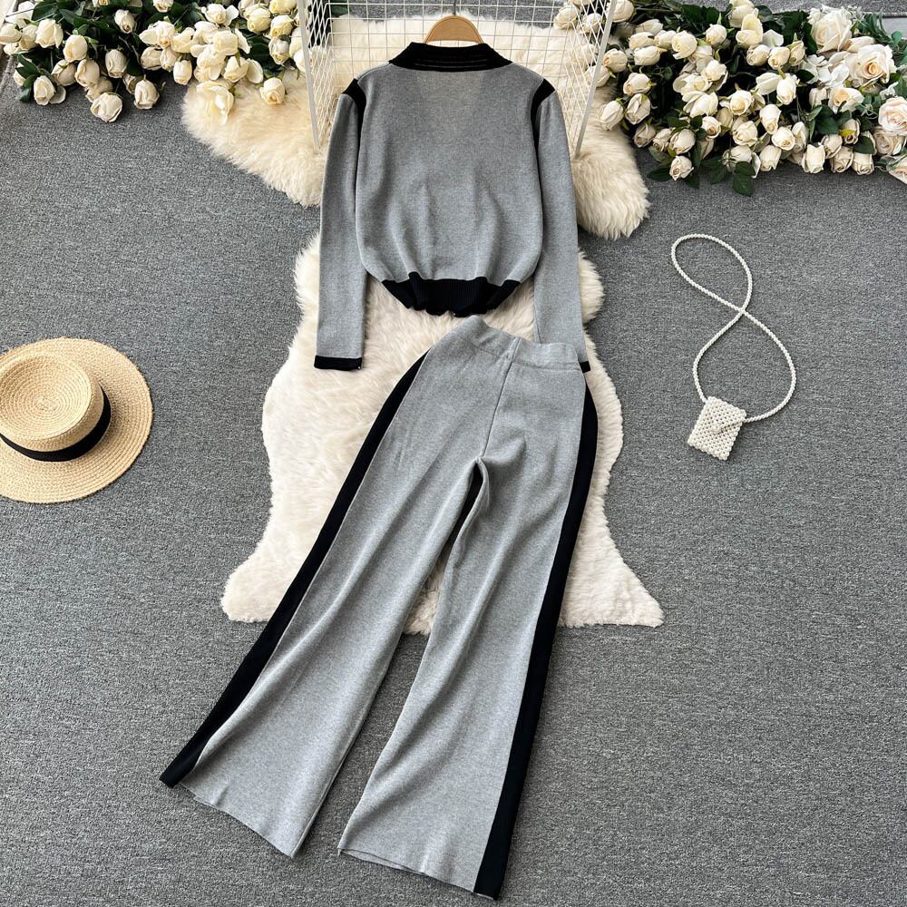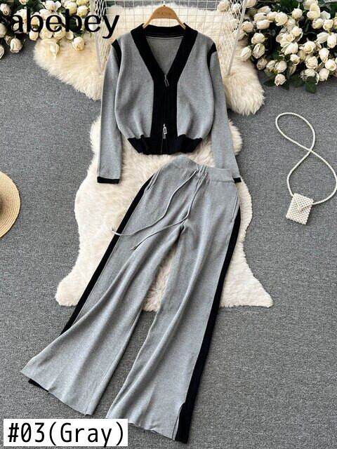 女性ニット 2 個セータースーツ麻の花 V ネックジッパーカーディガン + パンツ女性秋冬セーターセット衣装 オータム 秋物 ウィンター 冬物 Vネック フラワーデザイン Abe15708420959