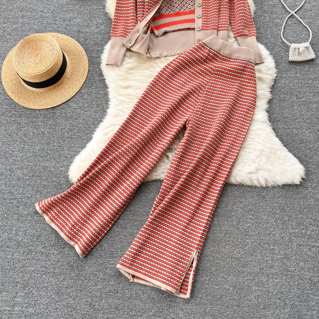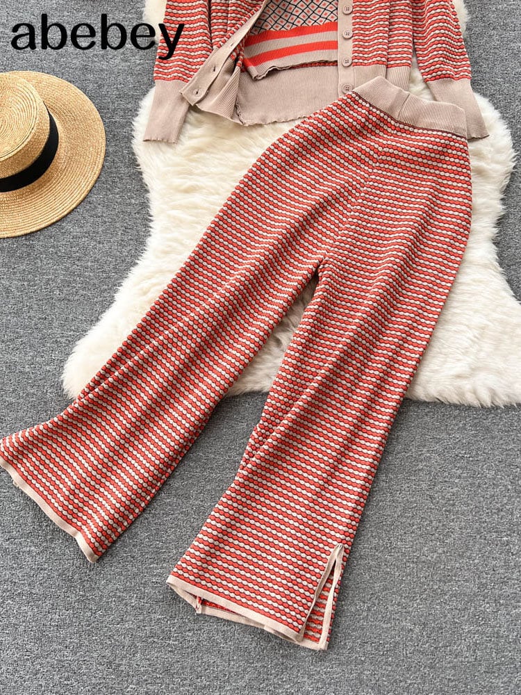 女性セーター 3 点セットトラックスーツ 2022 春秋ロングカーディガンコート + V ネックベスト + パンツニットスーツ衣装 スプリング 春物 オータム 秋物 Vネック Abe39943377879