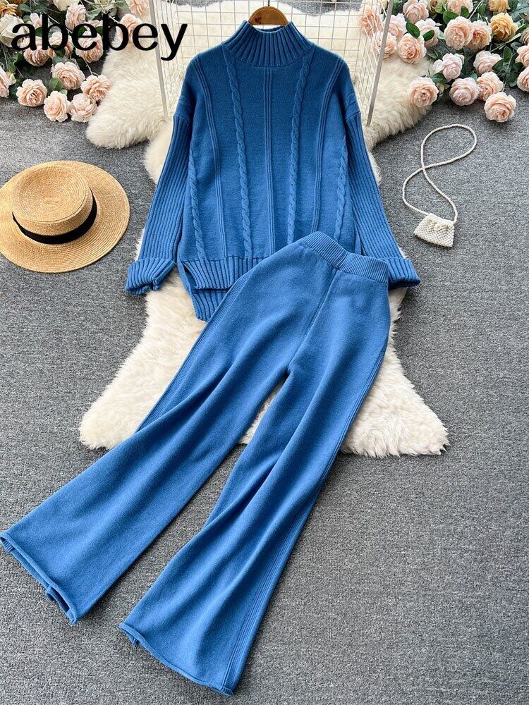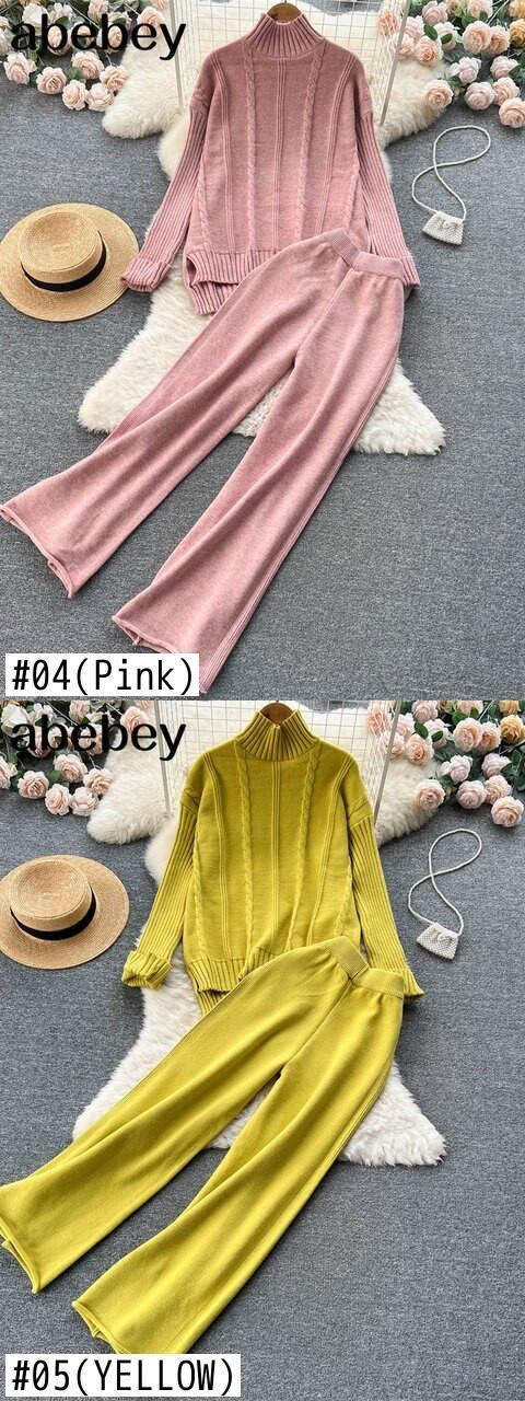 タートルネック長袖プルオーバートップ + ワイドレッグパンツスーツフリース衣装秋の女性の冬の 2 点セット ロング オータム 秋物 ウィンター 冬物 ワイドパンツ Abe5051963579