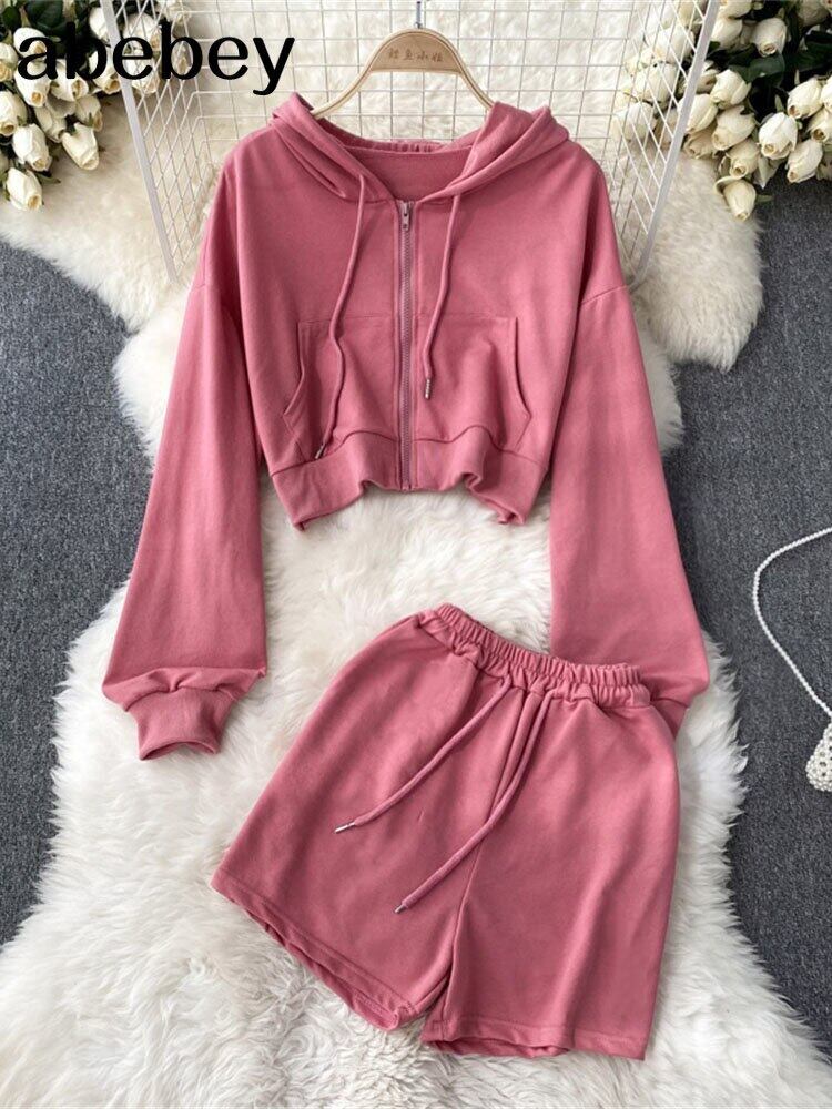 ピンク レディース スポーツウェア 長袖 無地 パーカー スウェットシャツ 春 秋 プルオーバー スウェットシャツ ショーツ 2点セット ロング スプリング 春物 オータム 秋物 ブルマー ソリッドカラー Abe30791232153
