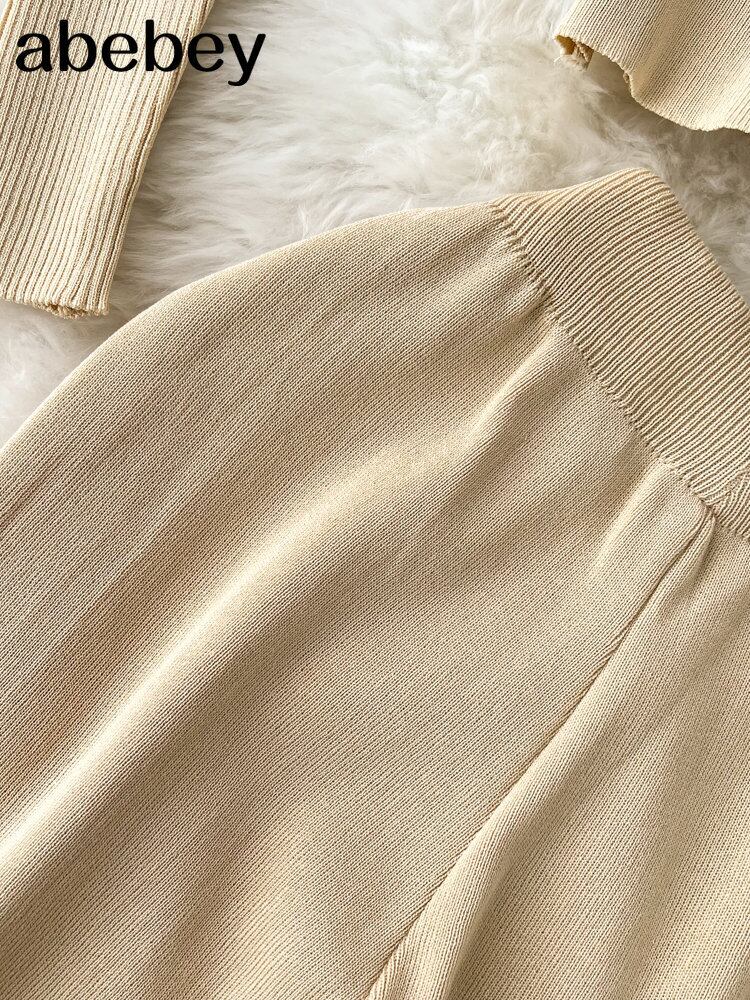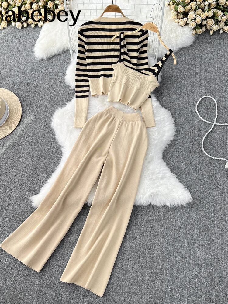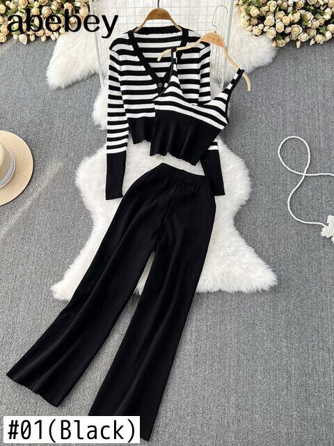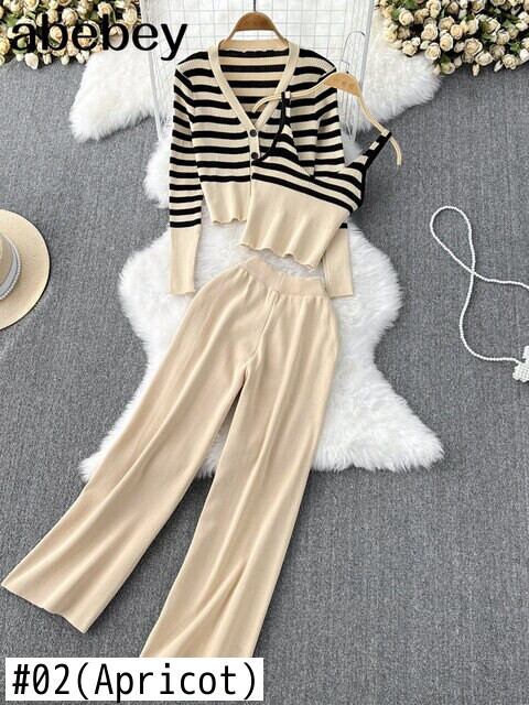冬のニットスリーピーススーツ女性長袖ショールカーディガン + V ネックセータータンクトップ + ワイドレッグパンツセット衣装 ロング ウィンター 冬物 ワイドパンツ Abe57135271119