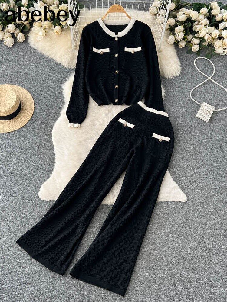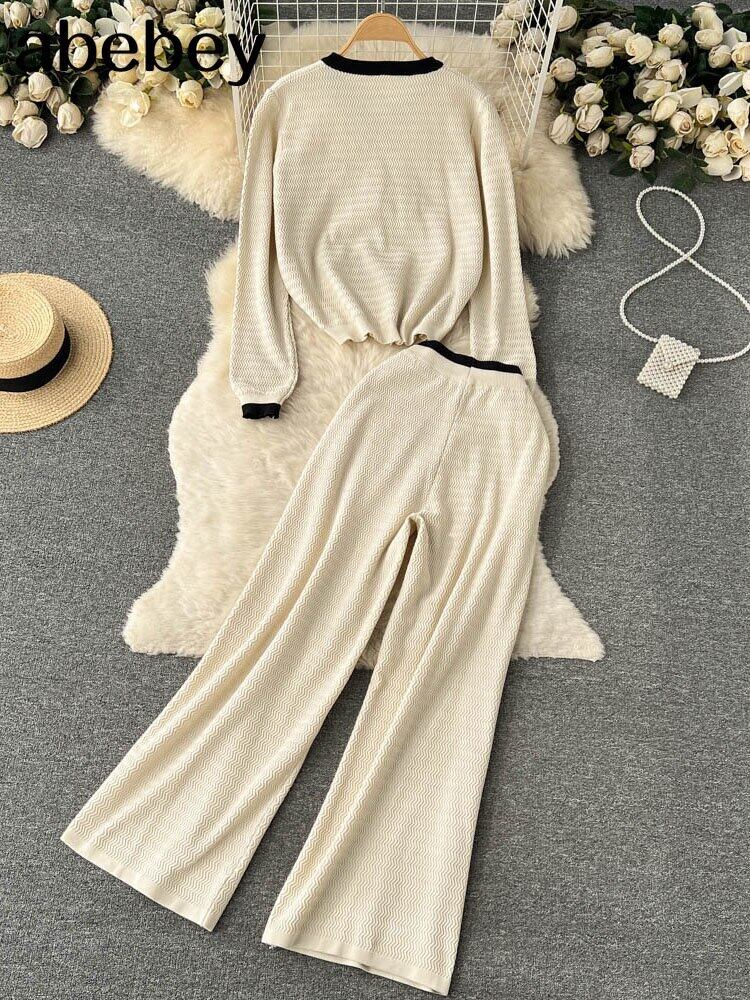 女性の 2 ツーピースセット 2022 秋冬ニット長袖セーターレジャースウェットスーツ女性トラックスーツ服 ロング オータム 秋物 ウィンター 冬物 Abe47711602869