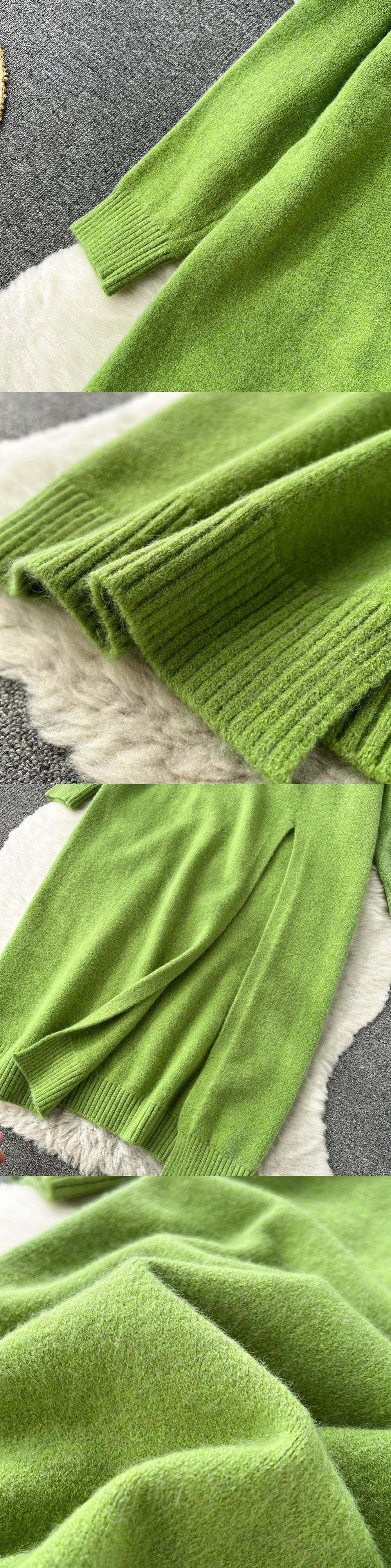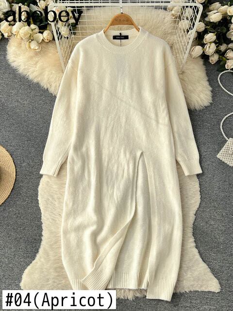 分割秋スリム O ネックロングニットドレス女性冬長袖ボディコンセータードレスセクシーなミディロングシースパーティー Vestidos オータム 秋物 ウィンター 冬物 Oネック Abe29541301057