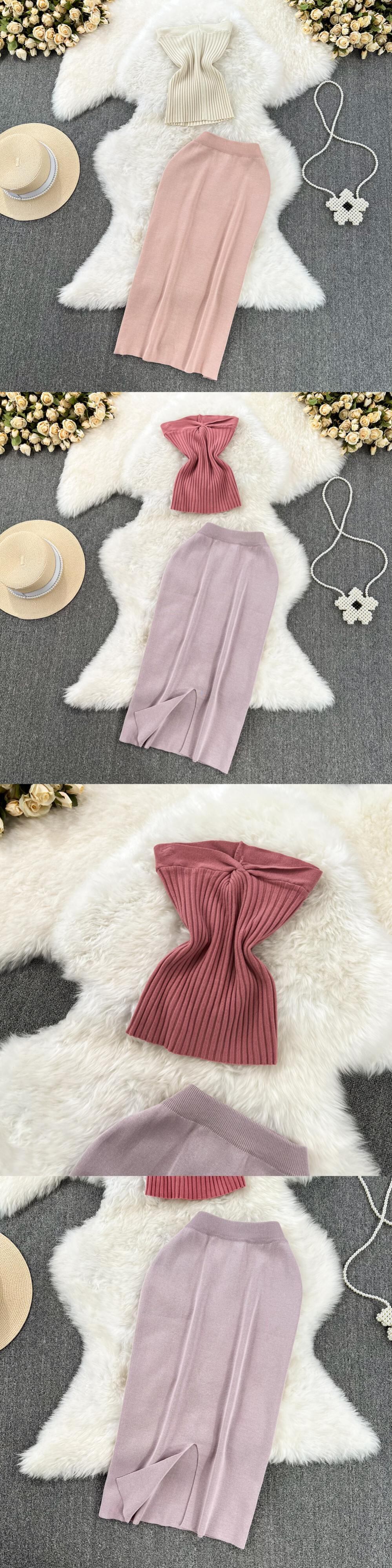 冬のセーターセットノースリーブキャミソールクロップトップ + ミディロングスリムスカート固体女性ニットツーピーススーツ ウィンター 冬物 ソリッドカラー Abe62447261381