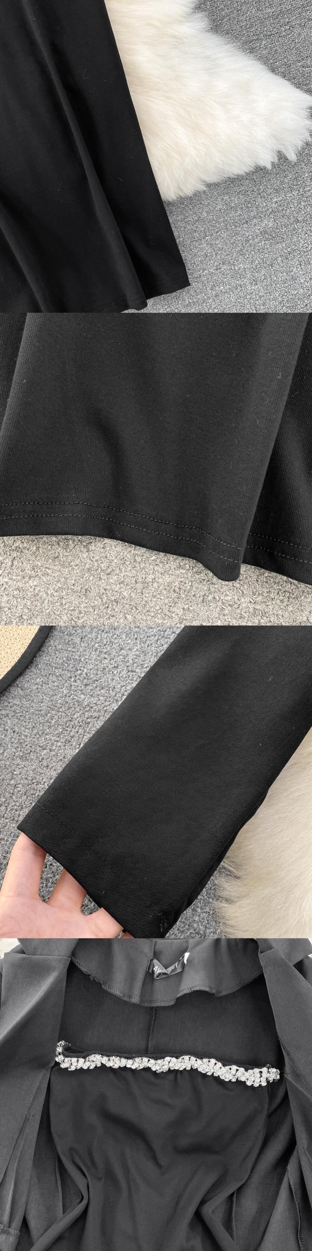 黒 2022 秋のツーピースドレスセット女性ブレザーコート + ストラップドレスセットスリムドレススーツ ブラック オータム 秋物 Abe17152753286