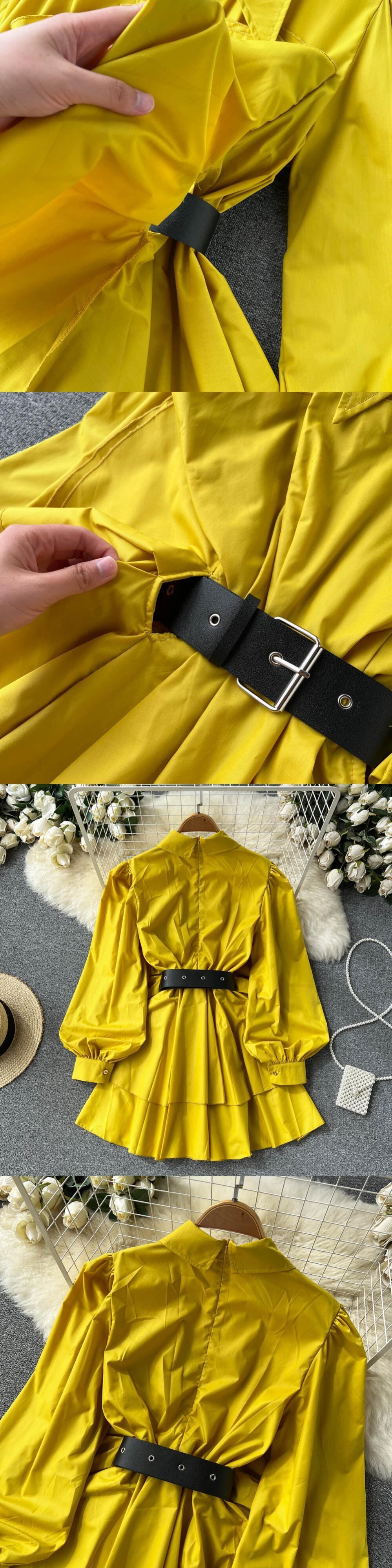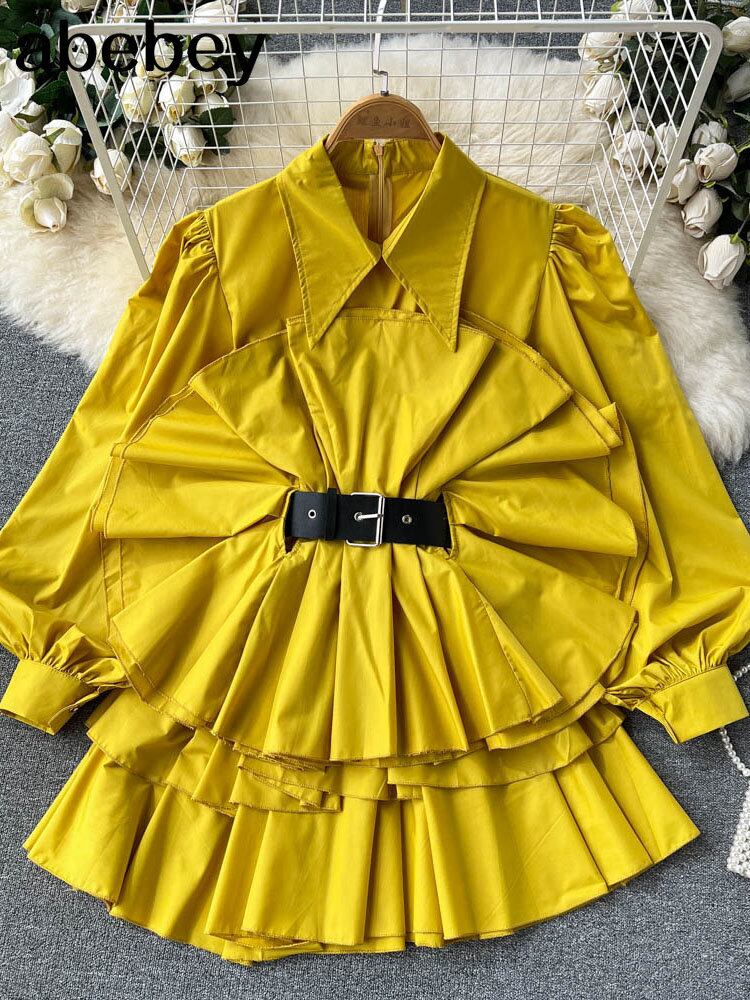 1 シャツ イレギュラー パフ スリーブ プリーツ フリル トップス グリーン レッド ブラウス トレンディな女性 2022 秋 オータム 秋物 Abe48418988462