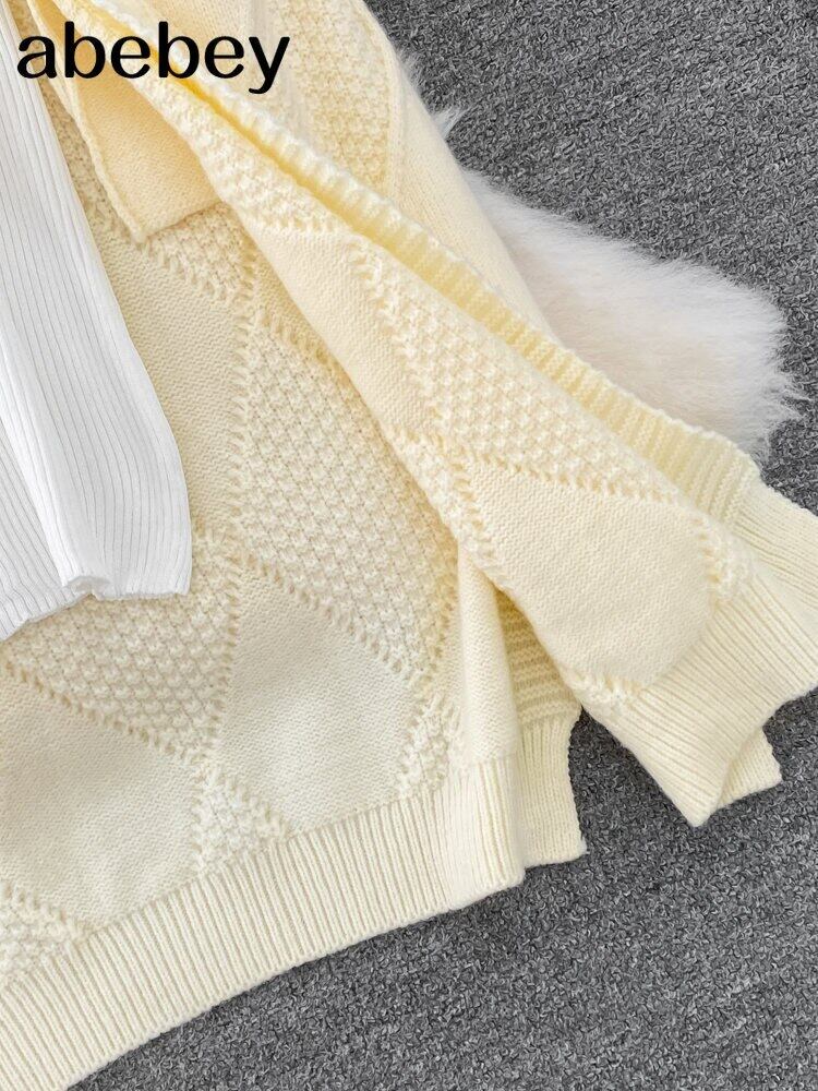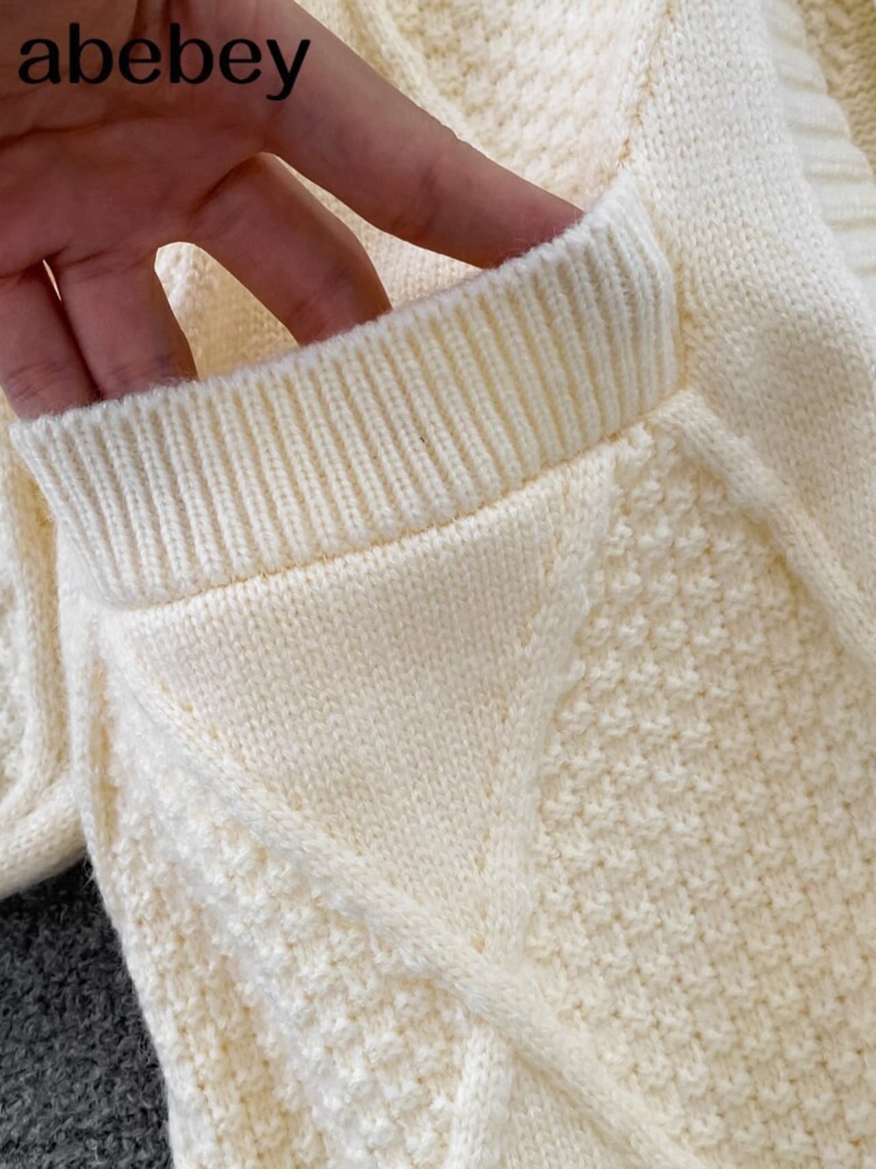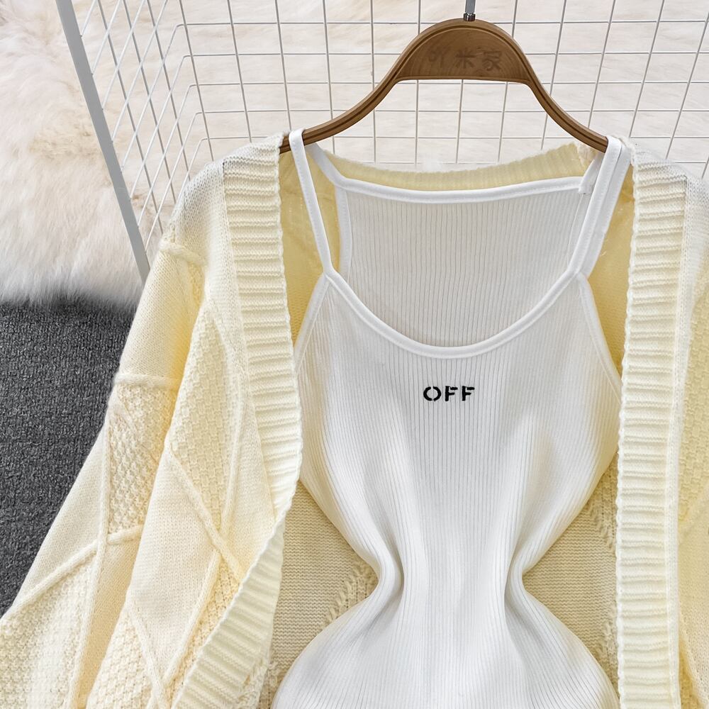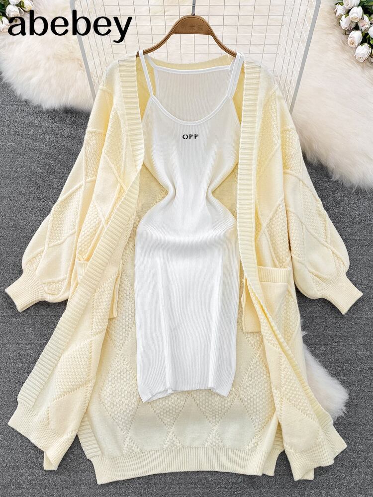 衣装 2022 ニット女性セットルーズ長袖カーディガンセーター + 固体弾性ドレスフレンチスタイルのツーピースセット ロング エラスティック 伸縮 ソリッドカラー Abe4641716075