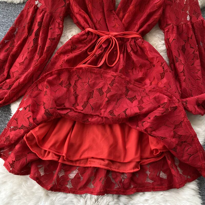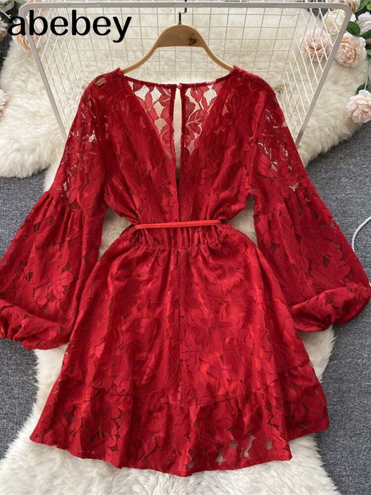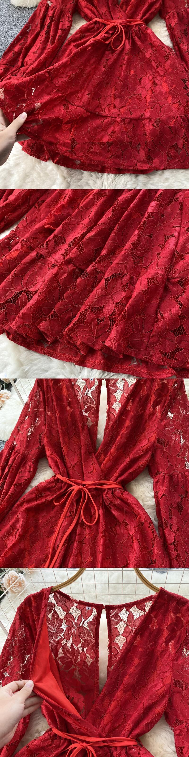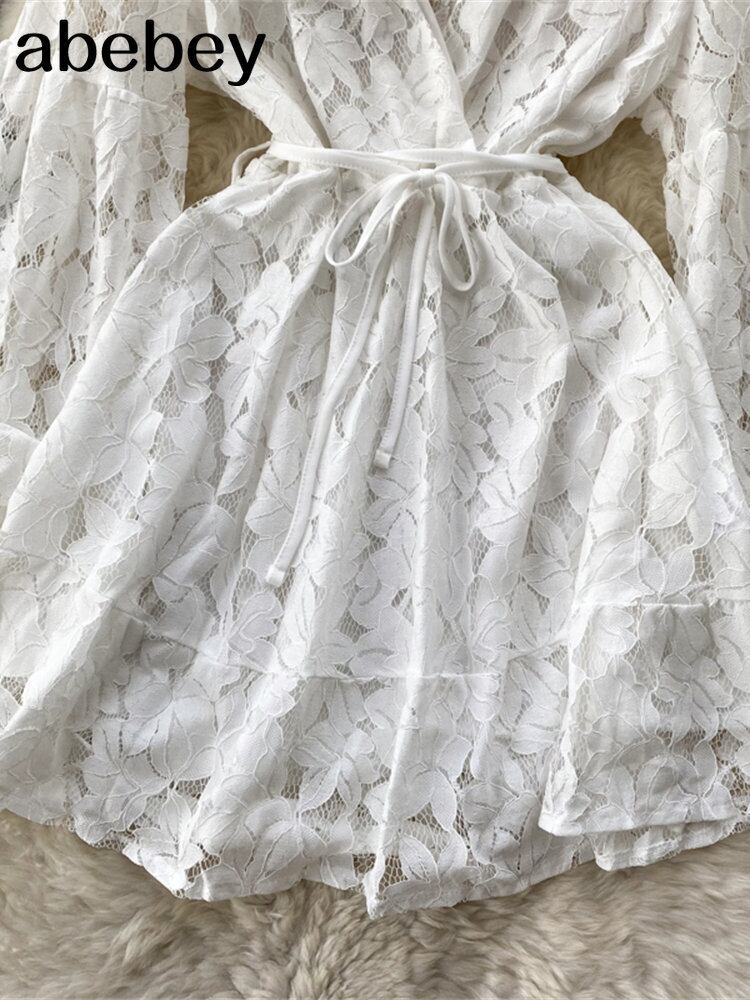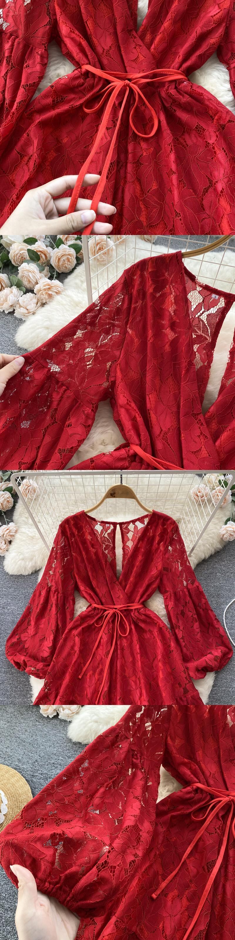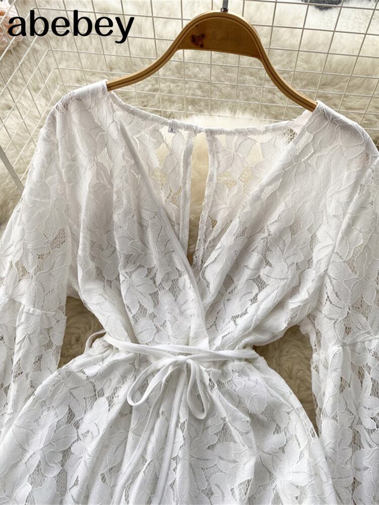 女性のレースのロンパース長袖 V ネックルーズオーバーオールジャンプスーツ夏ワイドレッグビーチ Playsuits ロング サマー 夏物 Vネック ワイドパンツ Abe97713742340