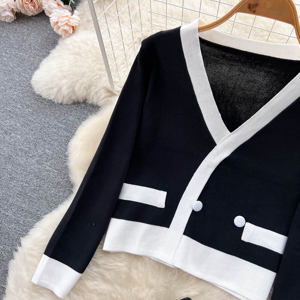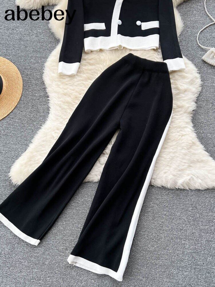 2022年 秋 ランウェイ 2点セット ニット 長袖 カーディガン セーター パッチワーク ファッション ジャンパー トップス パンツ スーツ 春 ロング スプリング 春物 オータム 秋物 Abe9098441984