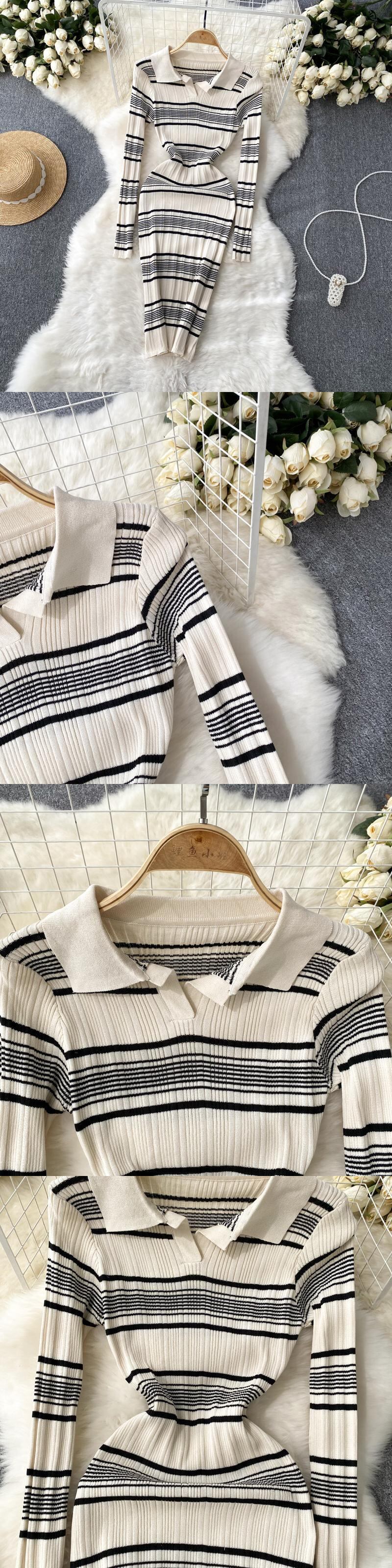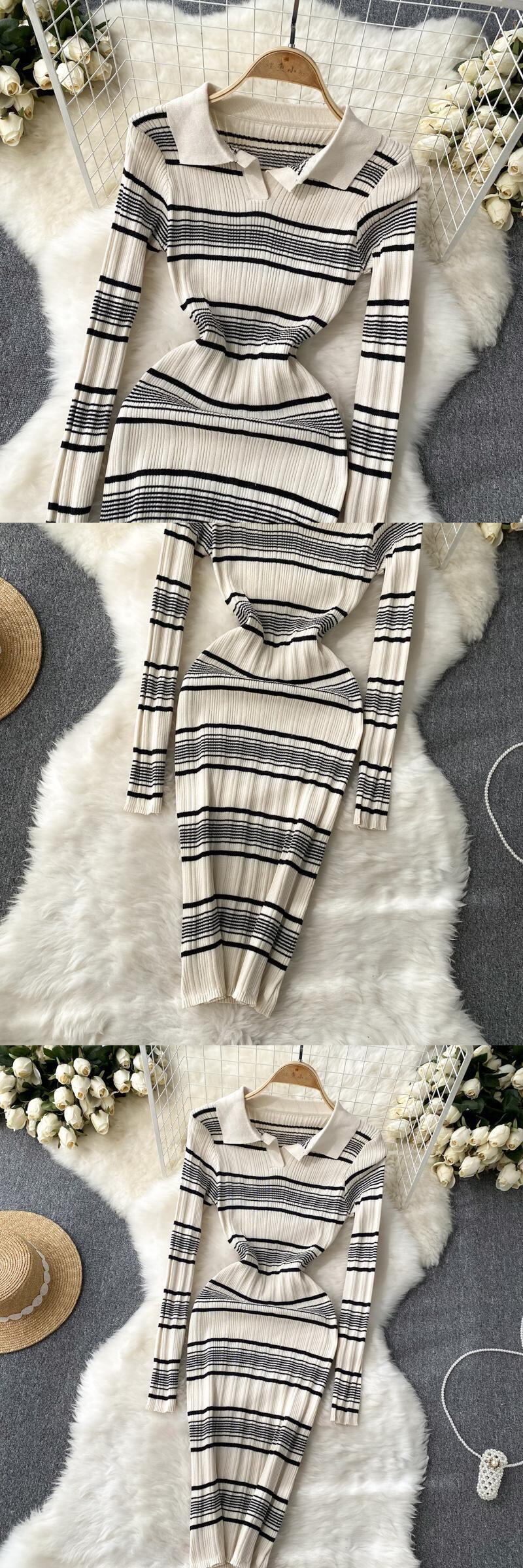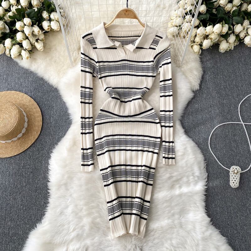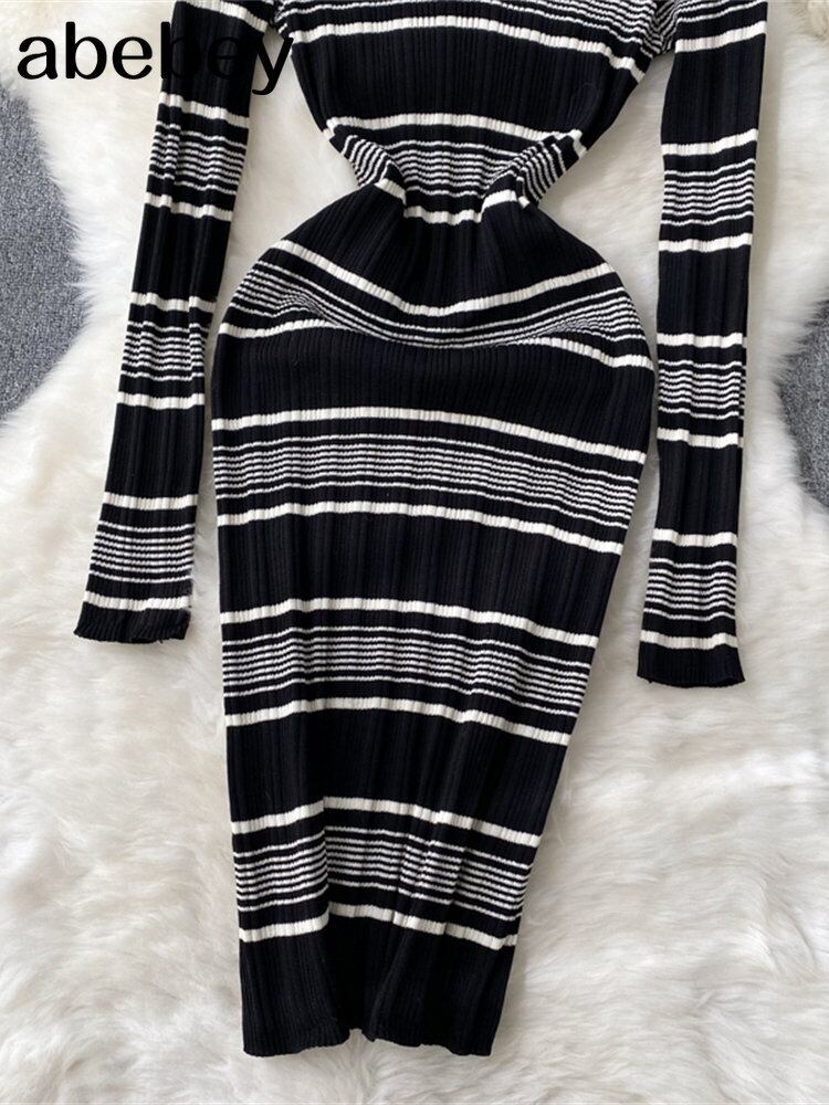 2022 秋のブリーフ全試合ストライプニットドレス女性ポロネック長袖ボディコン Vestidos ロング オータム 秋物 Abe57625602655
