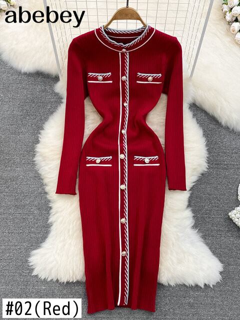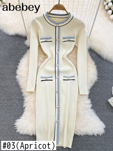 冬のニットドレス O ネック長袖 OL 暖かいロングドレス女性スリムミディセータードレス ウィンター 冬物 Oネック Abe59601105748