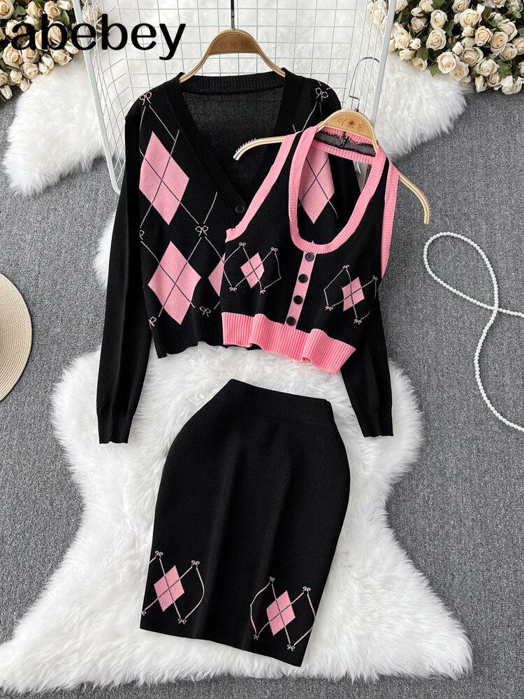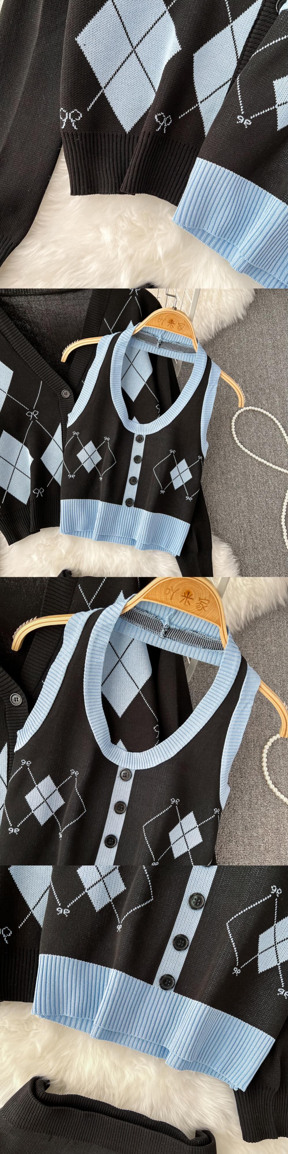 YK2 女性タンクトップ & ショートパンツスカート & カーディガンコートスーツルーズジオメトリ衣装秋冬ニット 3 点セット オータム 秋物 ウィンター 冬物 ショーツ ブルマー Abe42155148202