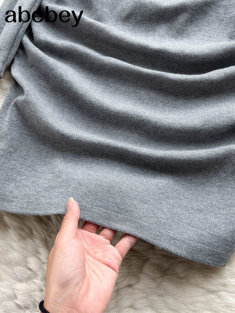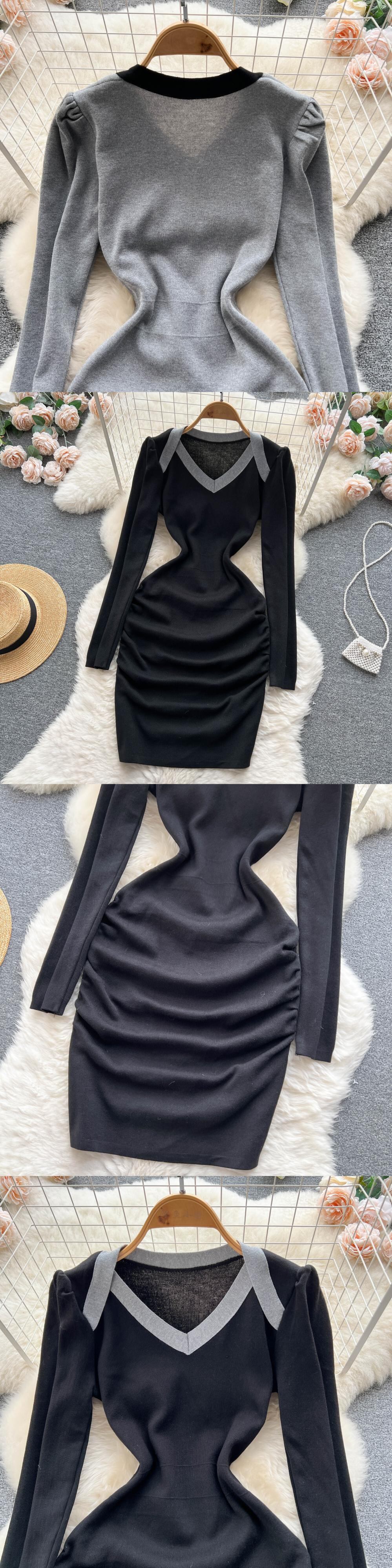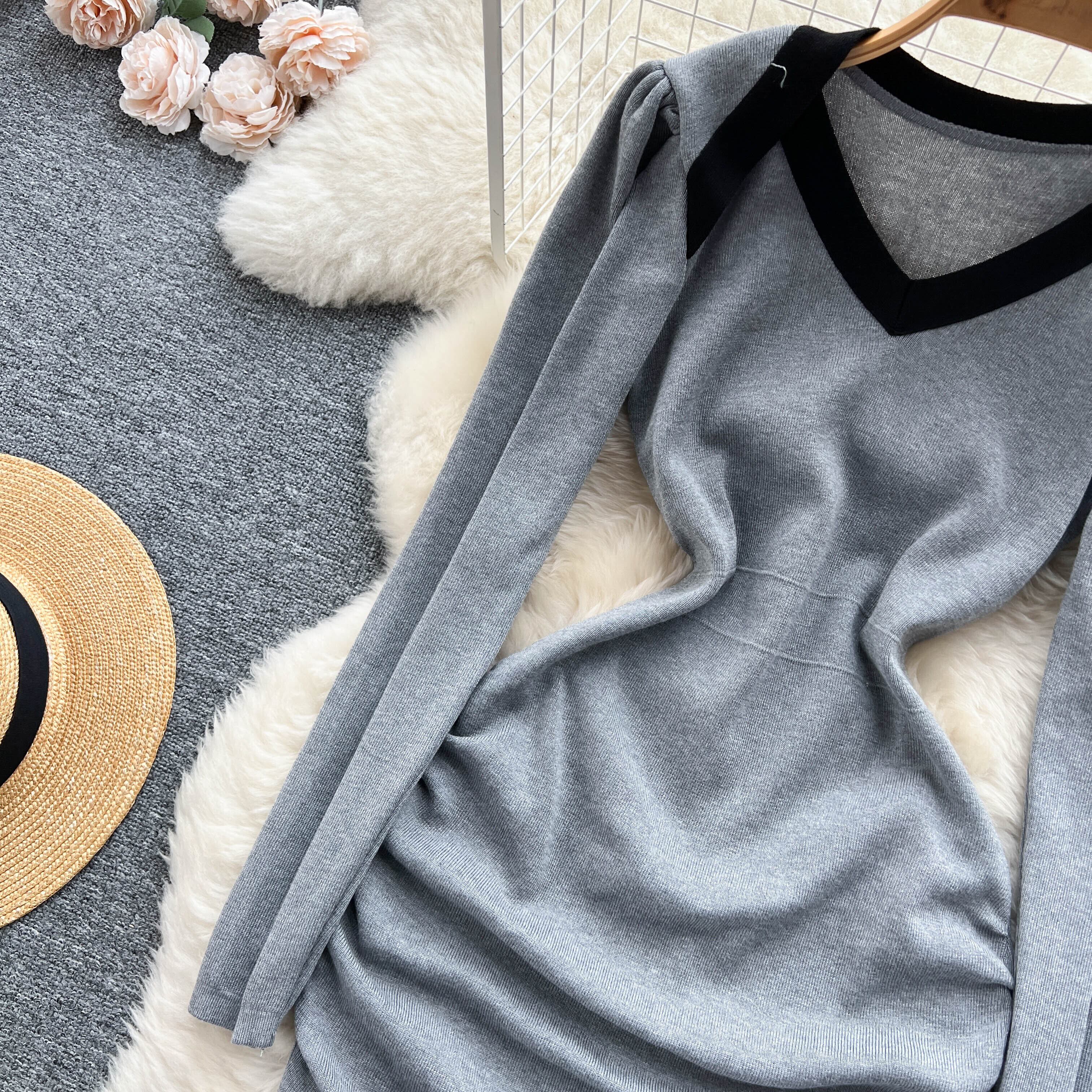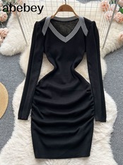 2022 秋 V ネック シース セーター ドレス長袖 A ライン ボディコン ドレス無地ストリート ニット ドレス ロング オータム 秋物 Vネック Aライン ソリッドカラー Abe9322412168