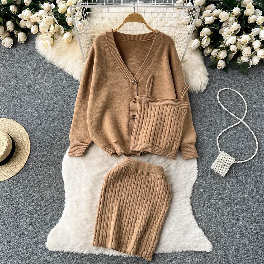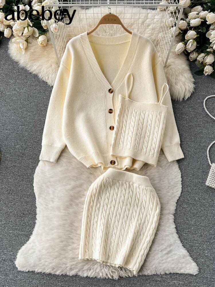 スウィートスリーピースセット女性セーターカーディガン + キャミソール + スカートセットニット 3 個スーツアンサンブル Conjuntos Feminino 大人ガーリー キュート カジュアル Abe73393951546