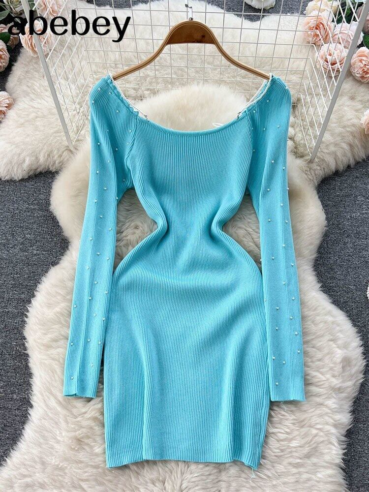 ホワイトニットセータードレス女性長袖ボディコンミニドレス冬ショートパーティードレスグリーンクリスマスドレス ロング ウィンター 冬物 Abe22009726964
