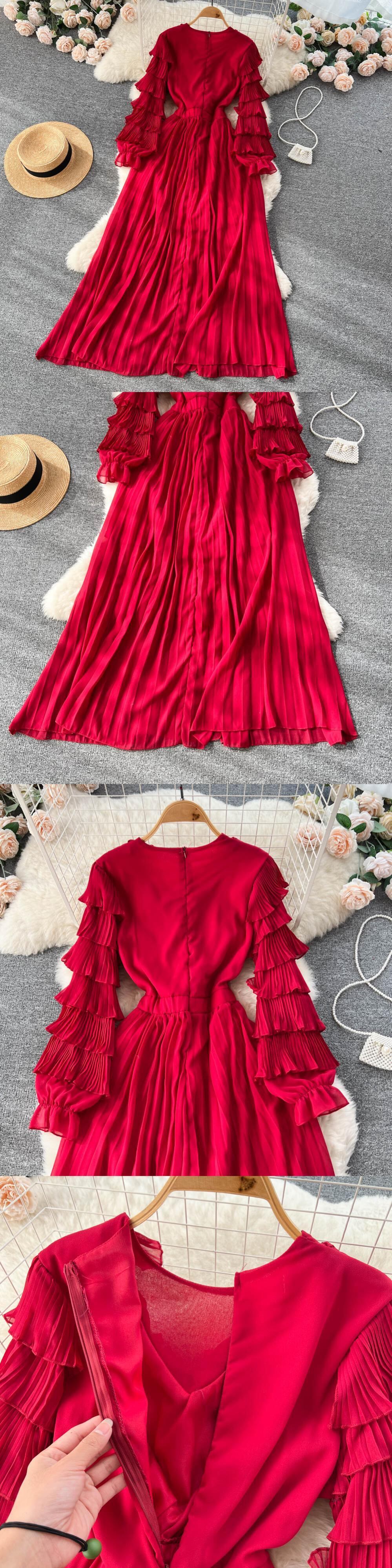 プリーツ フリル女性ドレス 2022 固体夏の気質ディープ V ネック A ライン スリム フリル ドレス ラッフル サマー 夏物 Vネック Aライン ソリッドカラー Abe29239909772