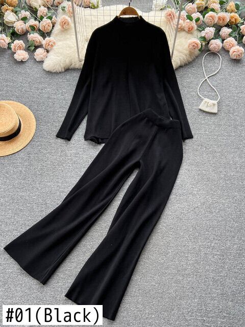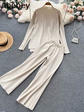 2 ピースセーターセット女性トラックスーツ sOLID タートルネックセーター + ゆるいズボンシックなカーディガンセーター + ニットキャロットパンツセット ソリッドカラー Abe37827570582