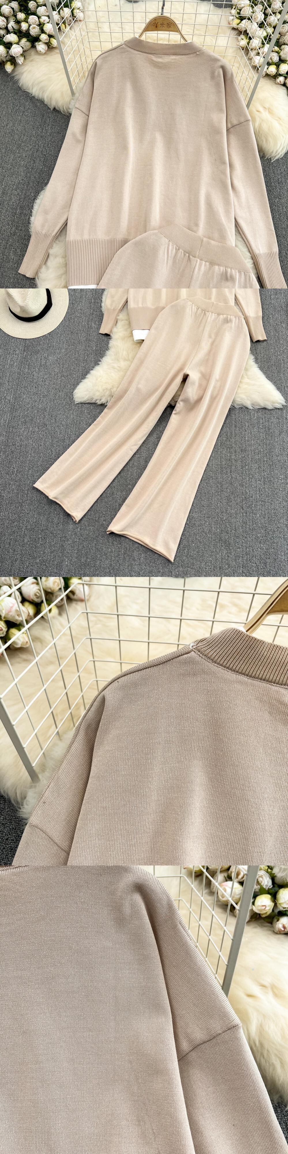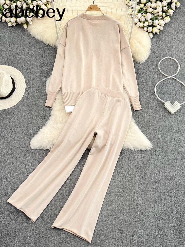秋冬ニットスーツパンツ女性のセーターパンツ 2 点セットレディース衣装プルオーバー長袖トップ ロング オータム 秋物 ウィンター 冬物 Abe29583784332