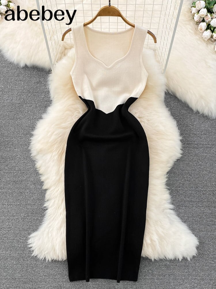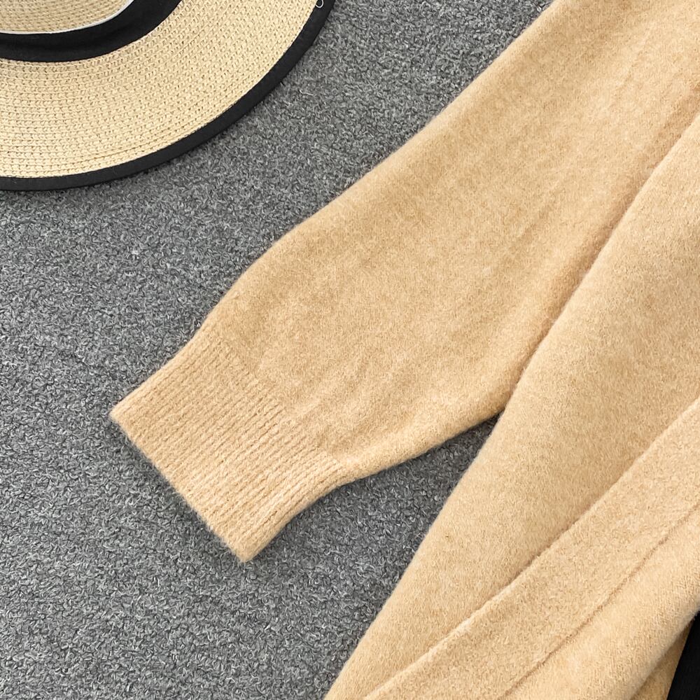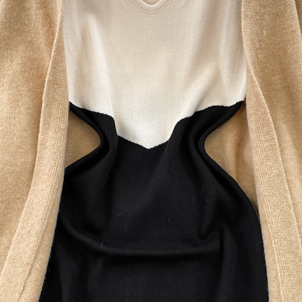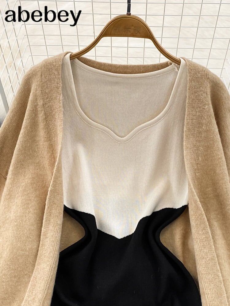 2022 ニット女性セットルーズ長袖ロングカーディガンセーター + 固体弾性ドレスフレンチスタイルのツーピースセット衣装 エラスティック 伸縮 ソリッドカラー Abe83145278514