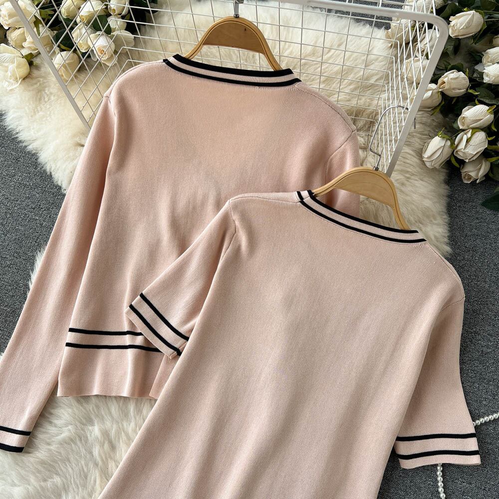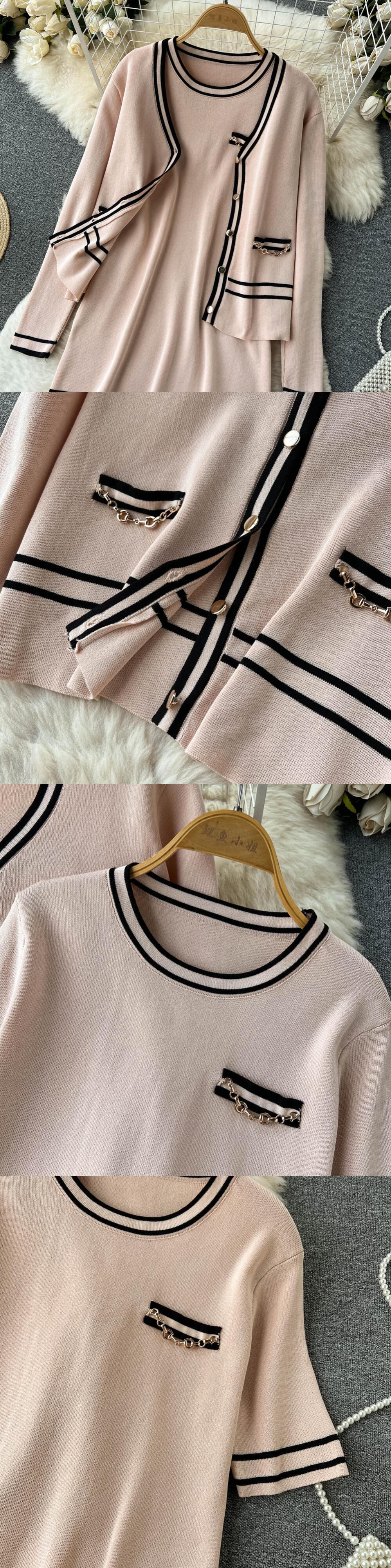 冬のツーピーススーツ長袖ニットセーターカーディガンコート + 固体弾性ドレスフレンチスタイル 2 点セット衣装 ロング エラスティック 伸縮 ウィンター 冬物 ソリッドカラー Abe30623547920
