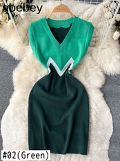 女性の夏のニットドレス 2022 V ネックストリートスリムミディショートサンドレス弾性ウエストセクシーなボディコンドレス エラスティック 伸縮 サマー 夏物 Vネック Abe97668749964