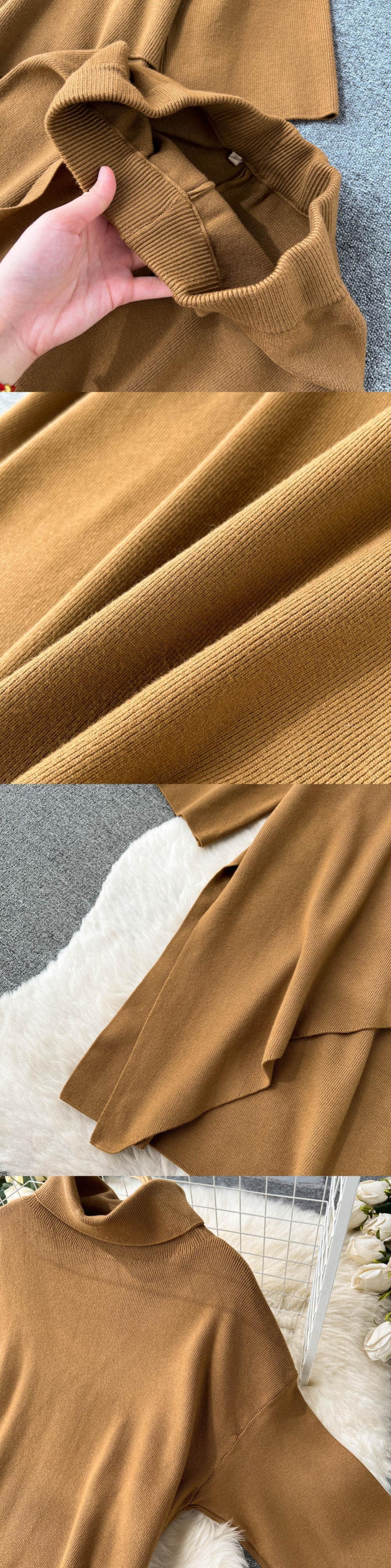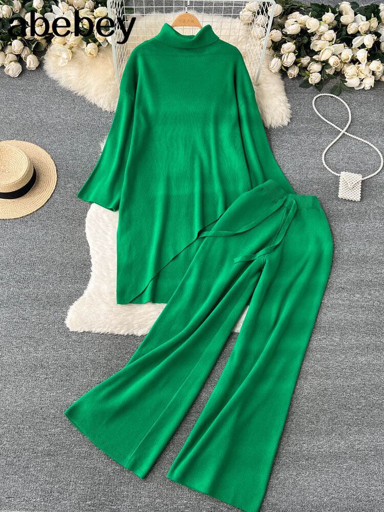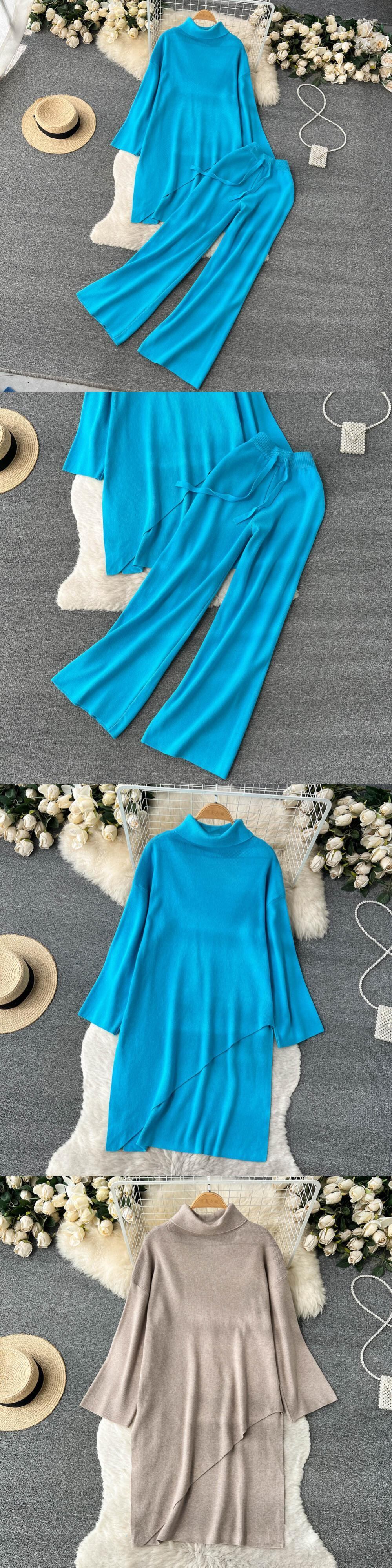タートルネック長袖プルオーバーロングトップ + ワイドレッグパンツスーツ衣装秋の女性の冬の 2 点セット オータム 秋物 ウィンター 冬物 ワイドパンツ Abe45514049592