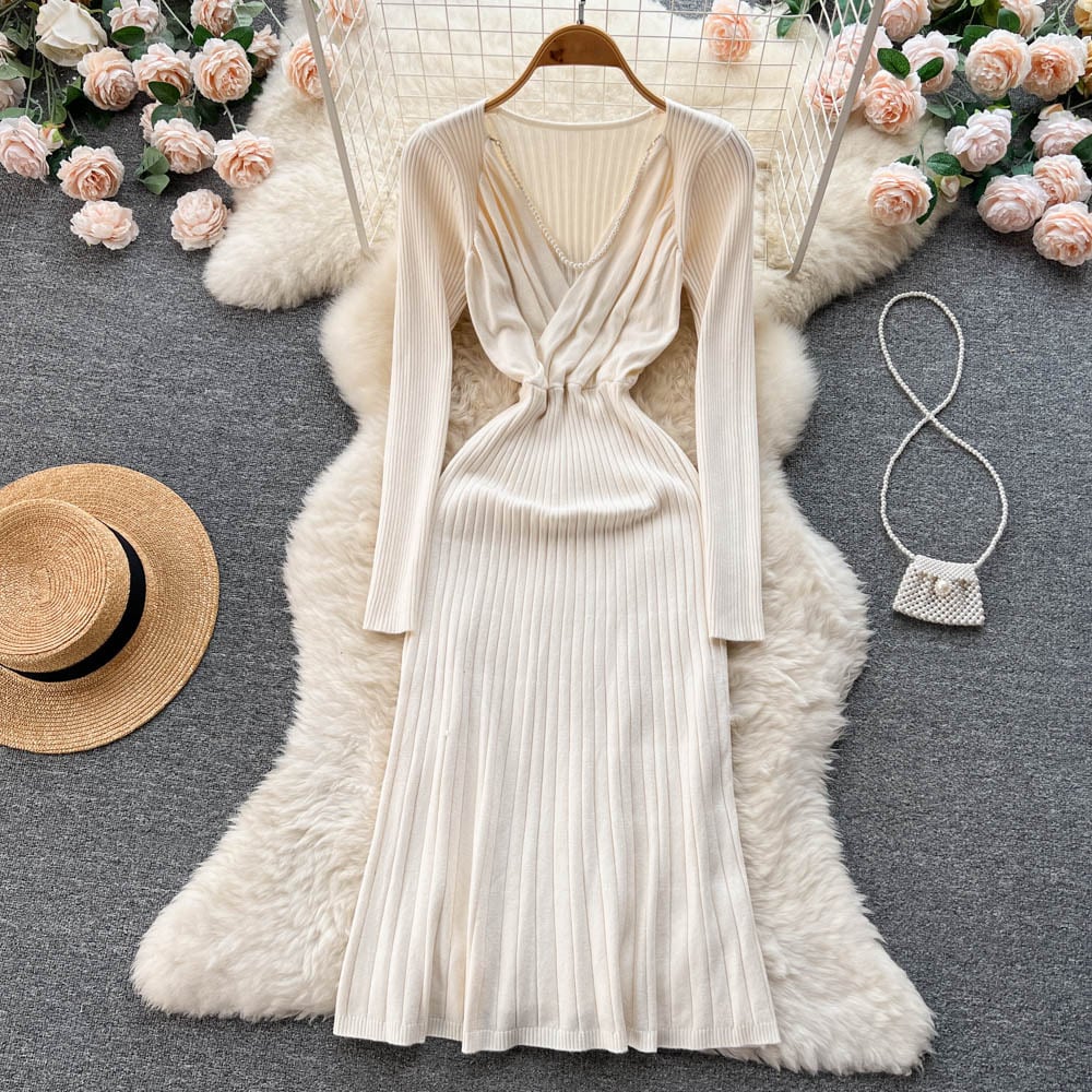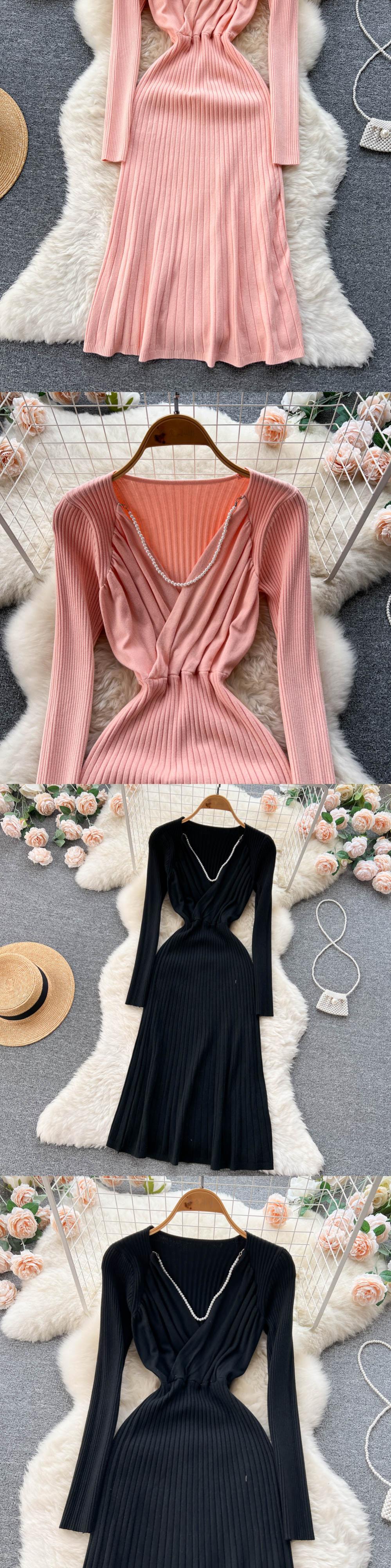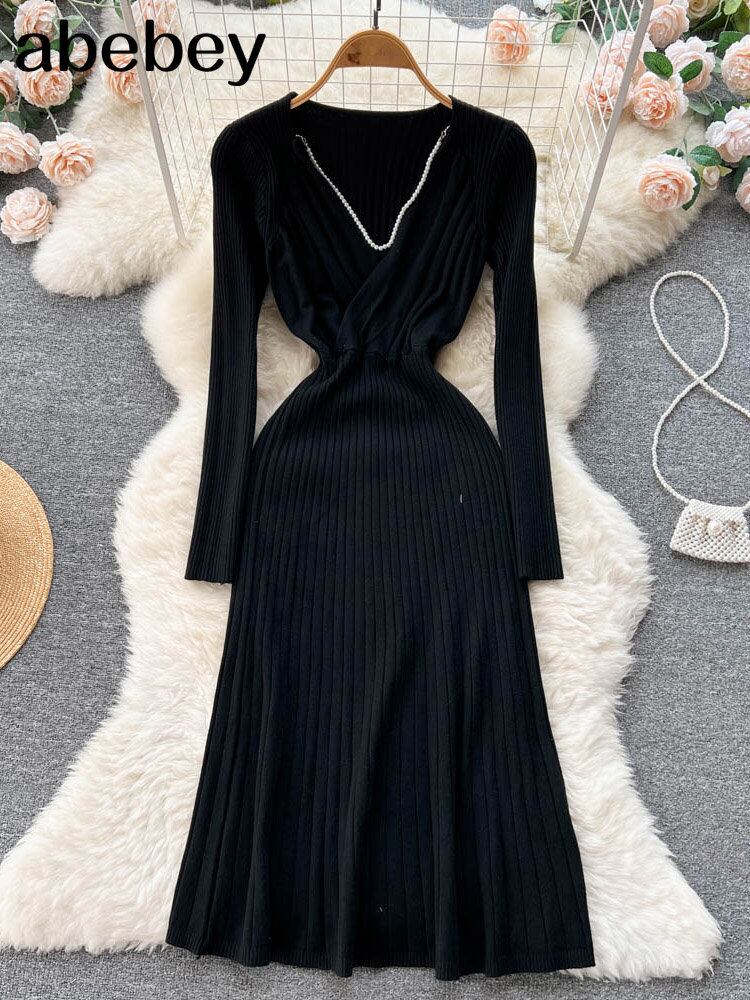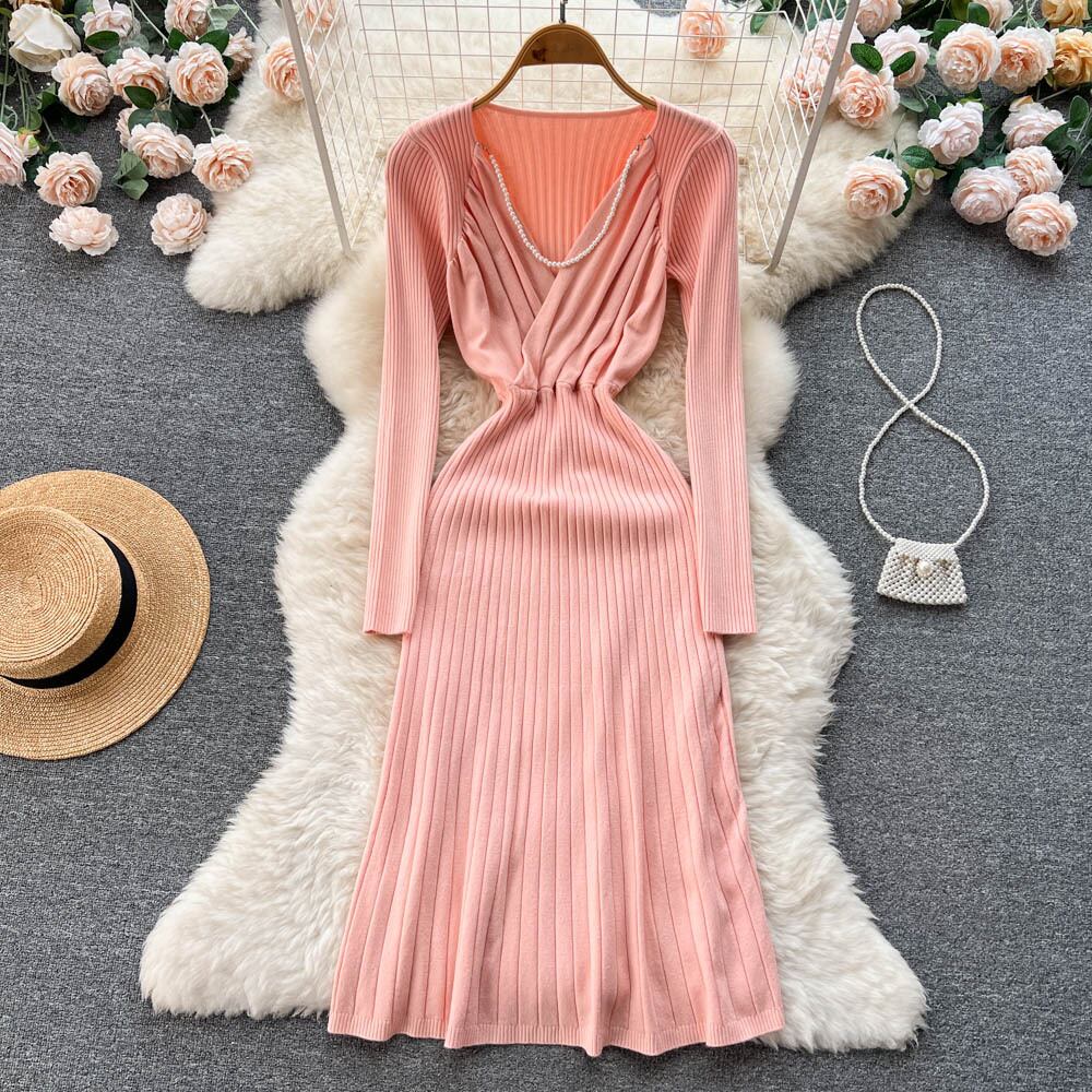 レッド女性ニットペンシルドレス長袖ブラックレス弾性スリムドレス秋冬セクシーな暖かいセータードレスピンクブラック ロング エラスティック 伸縮 オータム 秋物 ウィンター 冬物 Abe46704122142