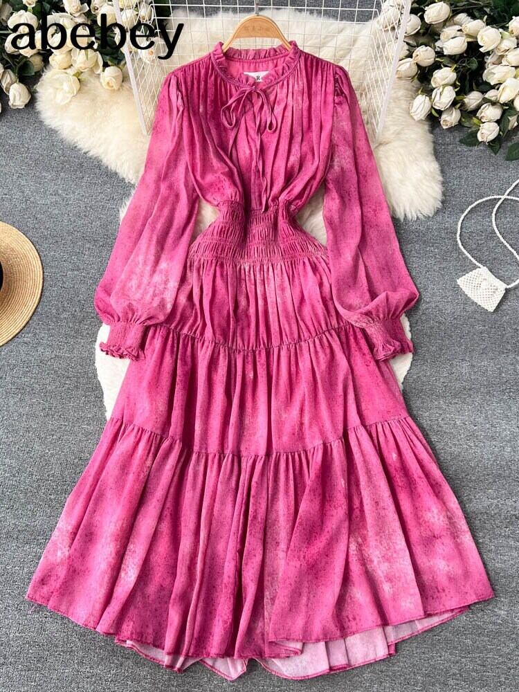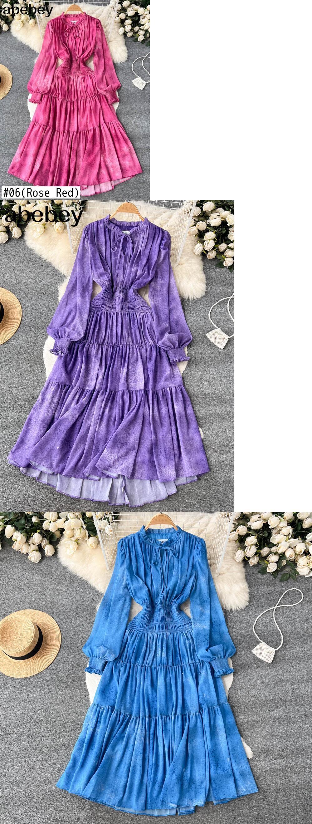 花柄女性スタンドカラーロングスリーブウエストドレスサマースタイルElbiceフロック 長袖 夏物 Abe55090840404