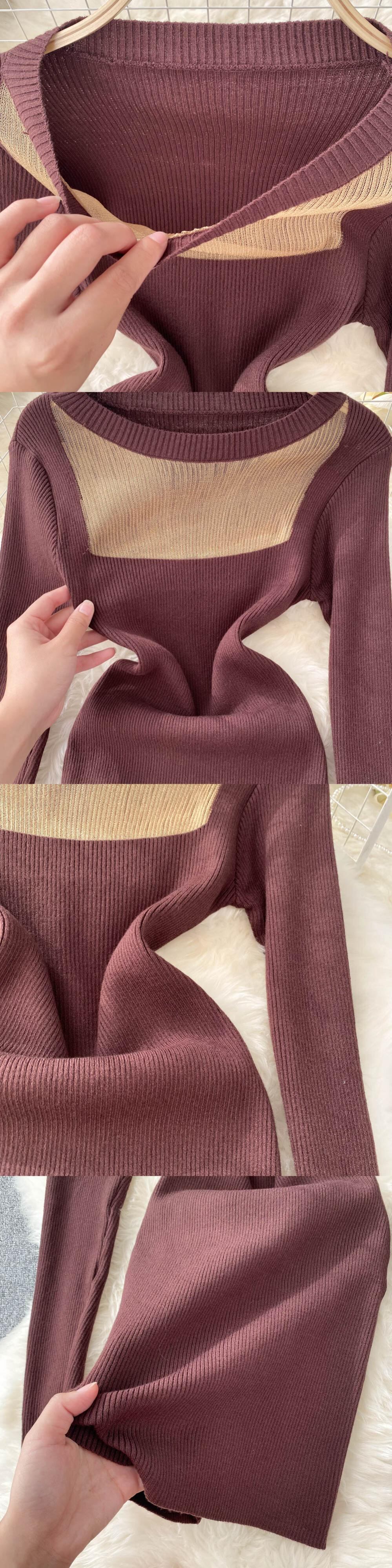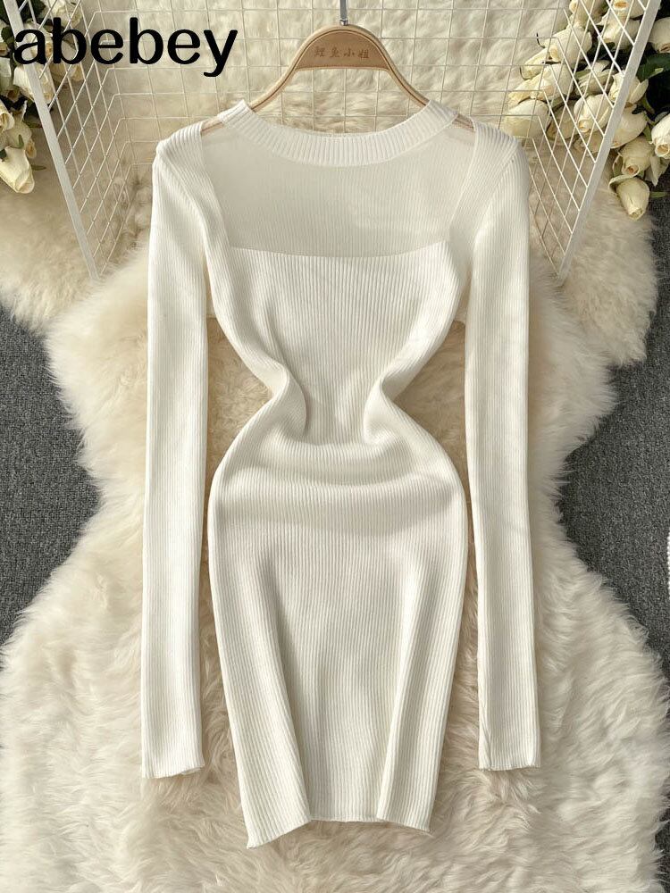 中空アウト女性ニットペンシルドレス長袖 O ネック弾性スリムドレス秋冬セクシーなボディコン暖かいセータードレス ロング エラスティック 伸縮 オータム 秋物 ウィンター 冬物 Oネック Abe29386136155
