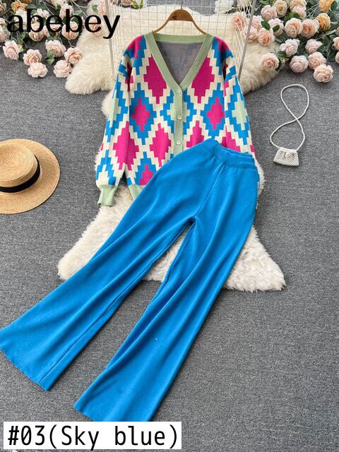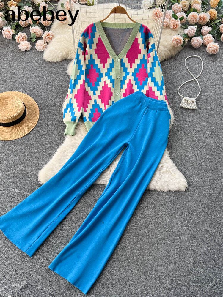 2 個のセーターセット女性トラックスーツ V ネックセーターカーディガン + ルーズなズボンシックなプルオーバーセーター + ニットキャロットパンツセット Vネック Abe97738819340