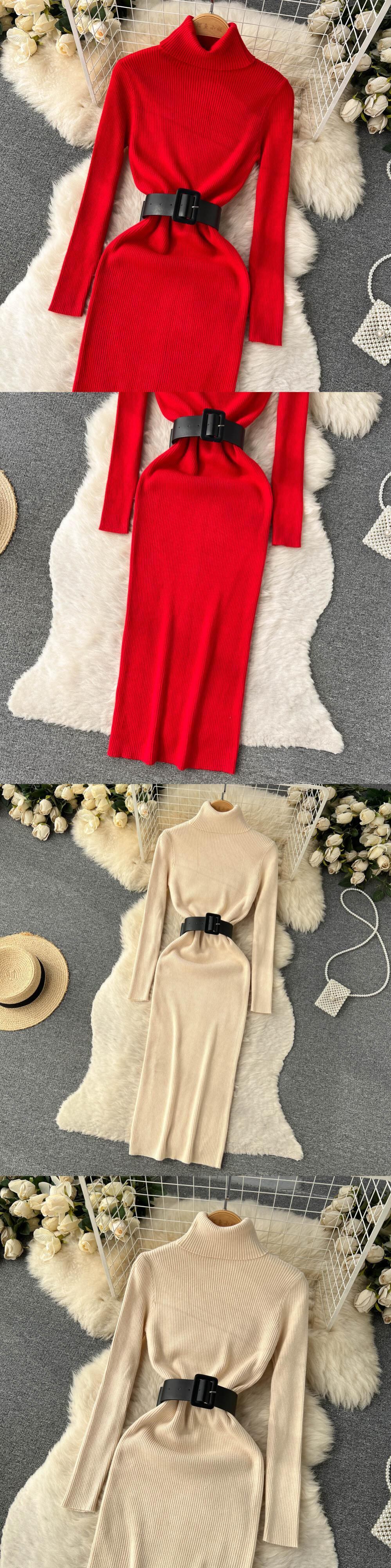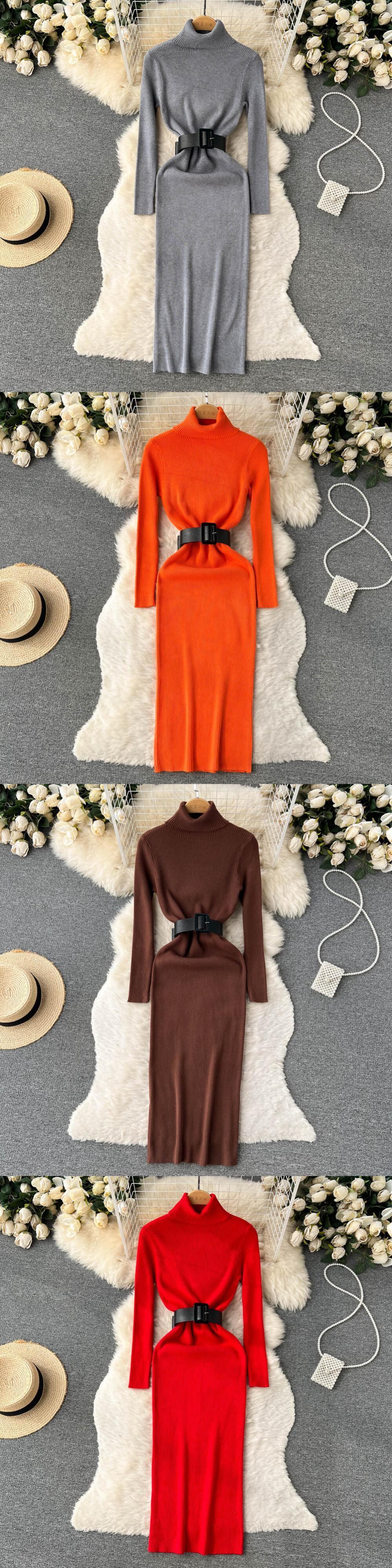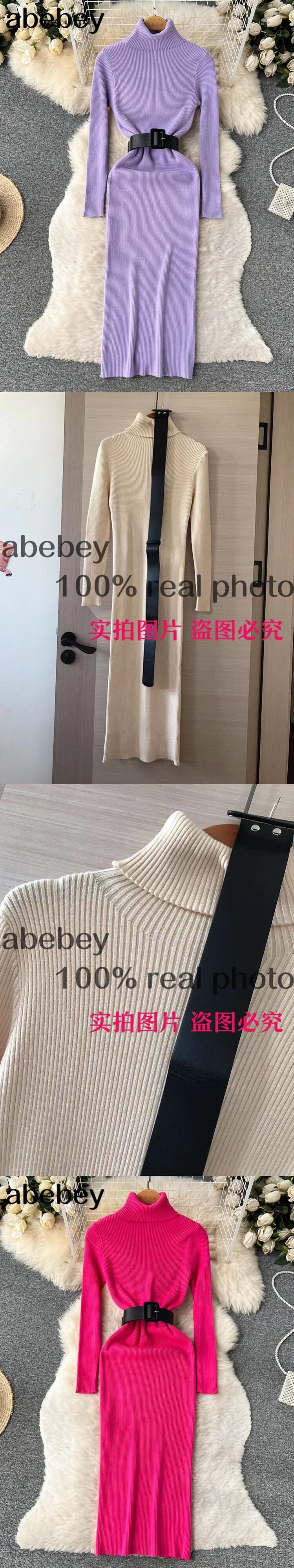 秋冬女性ニットドレスタートルネックセータードレス女性スリムボディコン長袖底入れドレス Vestidos ロング オータム 秋物 ウィンター 冬物 Abe94647336349