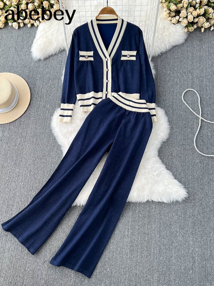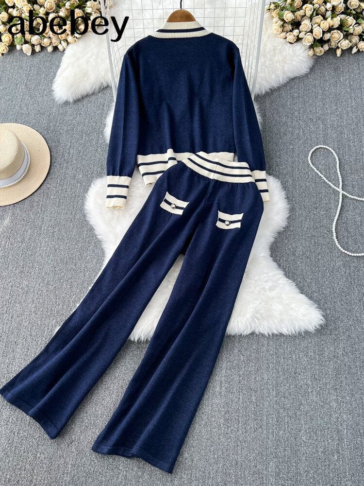 女性の 2 ツーピースセット 2022 秋冬ニット長袖セーターレジャースウェットスーツ女性トラックスーツ服 ロング オータム 秋物 ウィンター 冬物 Abe80282784214