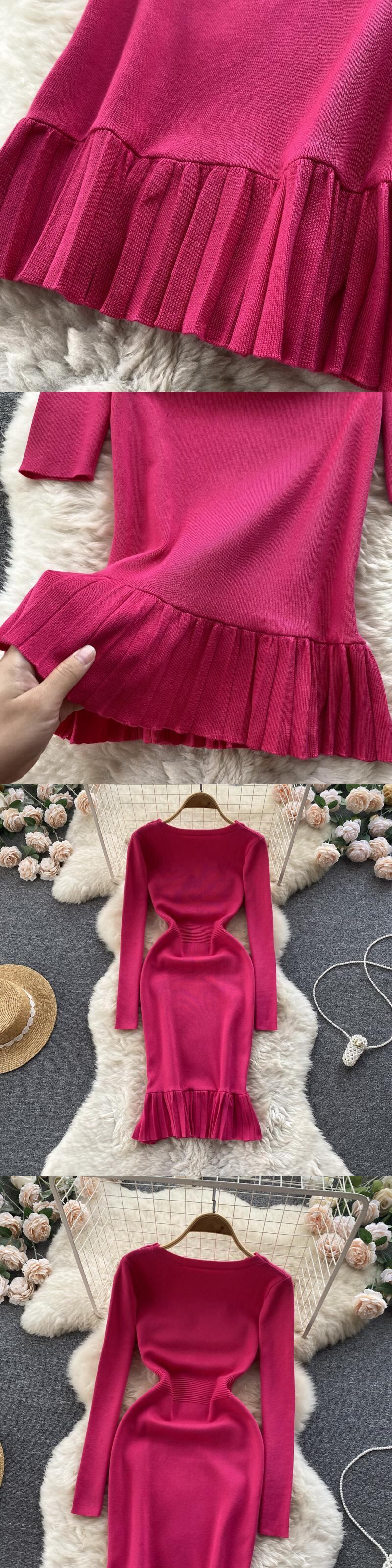 女性ニットペンシルドレス長袖マーメイド弾性スリムドレス秋冬セクシーなボディコン暖かいセーターミディドレス ロング エラスティック 伸縮 オータム 秋物 ウィンター 冬物 Abe74145382618