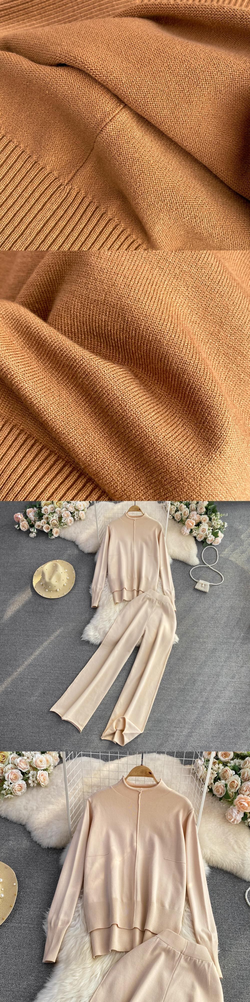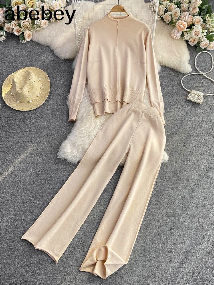 2ピースセーターセット女性トラックスーツプルオーバーセーター+ルーズズボンシックなプルオーバーセーター+ニットキャロットパンツセット Abe21225083481