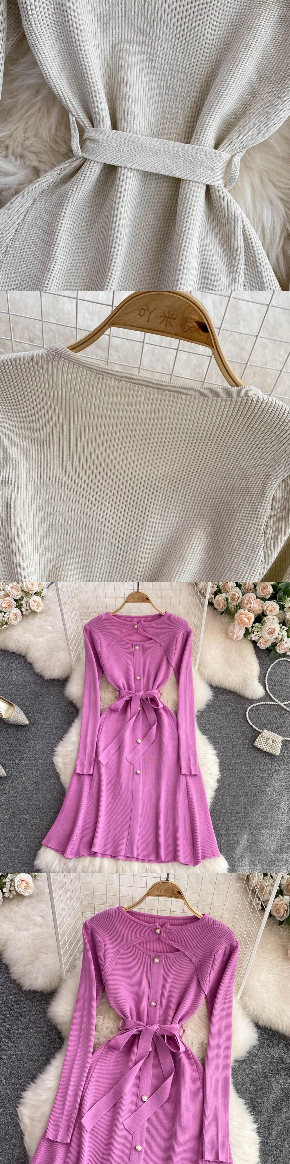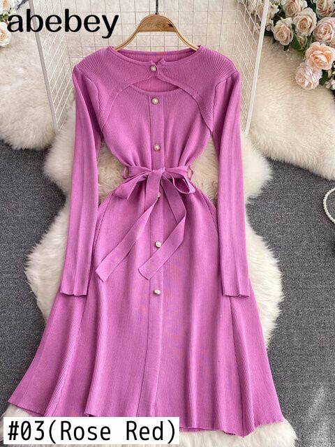 パープル A ラインセクシーなニットドレス O ネック弾性長袖セータードレス 2022 女性の冬のパーティードレス ロング エラスティック 伸縮 ウィンター 冬物 Oネック Aライン Abe12627501042
