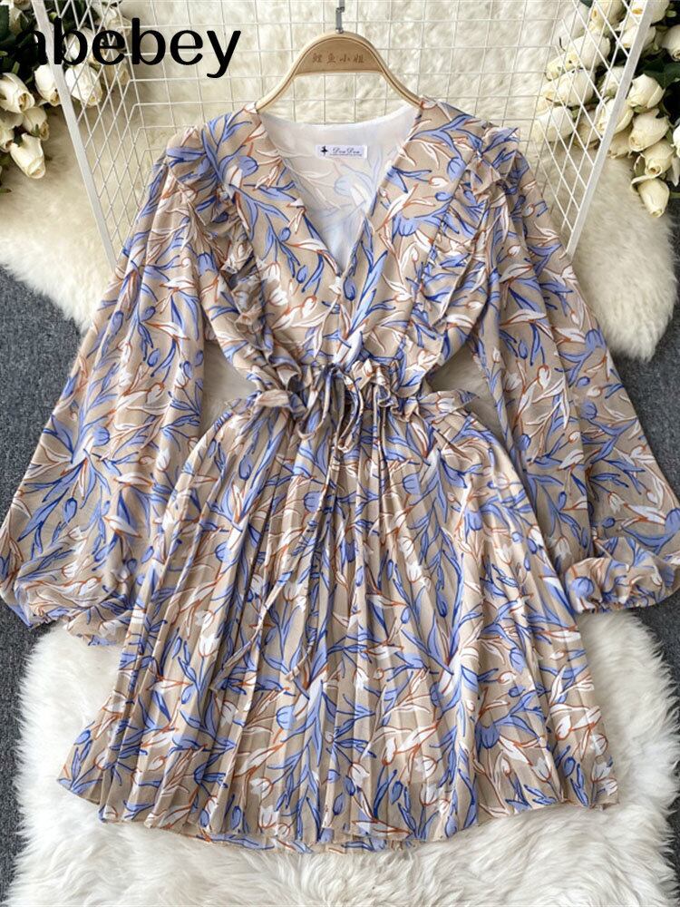 スーパー V ネック長袖自由奔放に生きるドレス女性フローラルセクシーな女性のビーチドレス大夏のパンクレイブドレス ロング サマー 夏物 花柄 Vネック Abe72599461846