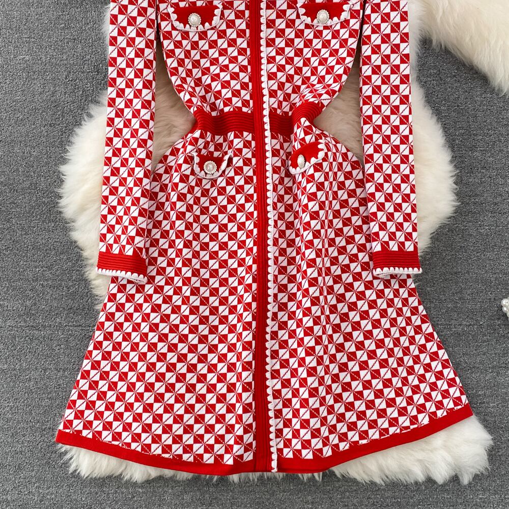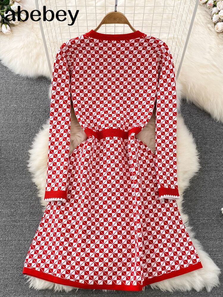 女性ニット A ラインドレス長袖 o ネック弾性スリムドレス秋冬セクシーなボディコン暖かいセータードレス ロング エラスティック 伸縮 オータム 秋物 ウィンター 冬物 Oネック Aライン Abe82976303705
