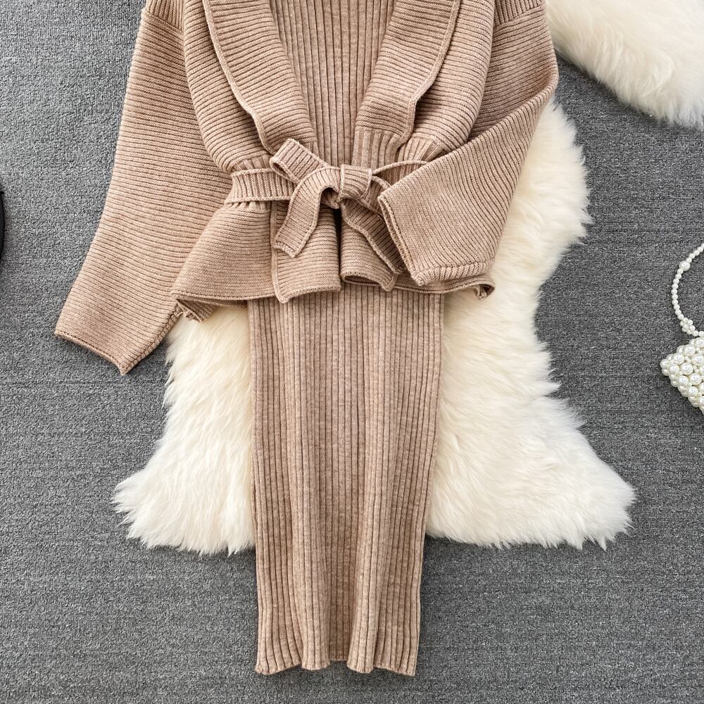 女性スーツニットセーターとドレス 2 点セット 2022 秋冬無地ニットカーディガンジャンパープル オータム 秋物 ウィンター 冬物 ソリッドカラー Abe47632512263