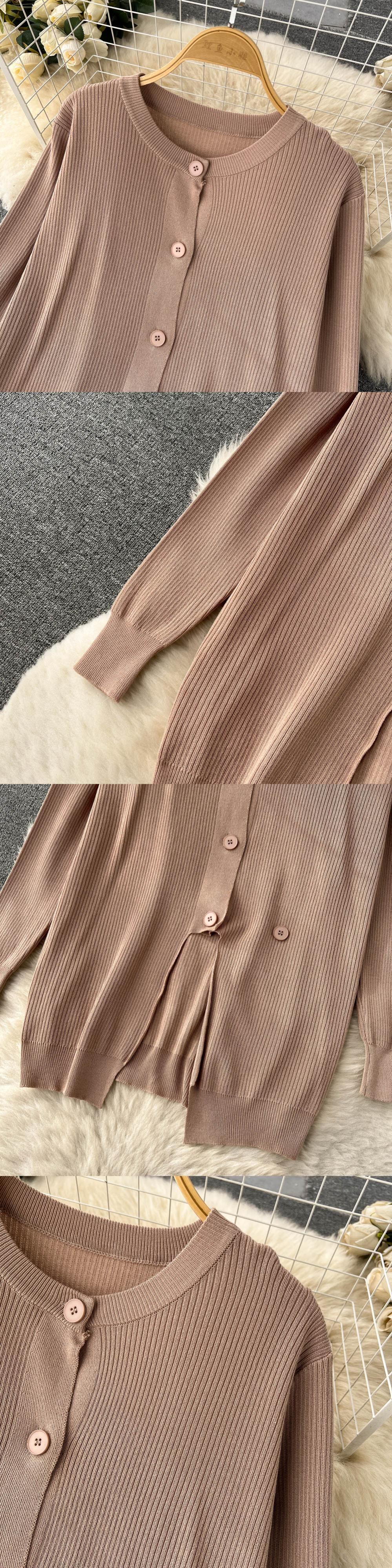 ルーズ不規則なセーターセットシングルブレストカーディガン + ワイドレッグロングパンツ女性 OL 冬ニット 2 ピーススーツ ウィンター 冬物 ワイドパンツ Abe45345321692